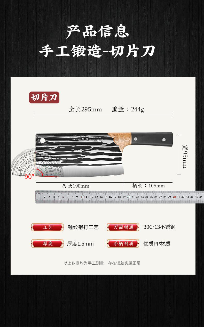 材质: 三合钢 刀身材质: 3Cr系列钢 品牌: 兴刃 工艺: 锤纹锻打 产品类别: 菜刀 是否进口: 否 原产国/地区: 广东 货号: XR-CD6159 产地: 阳江 价格段: 5-10 是否有专利: 否 规格: 2.0pp柄切片刀(logo随机发) 有可授权的自有品牌: 是 是否跨境出口专供货源: 否 风格: 新中式 颜色: 灰色 版权: 无 刀尖角度: 60°以上 刃长: 19cm 刀柄长: 11cm