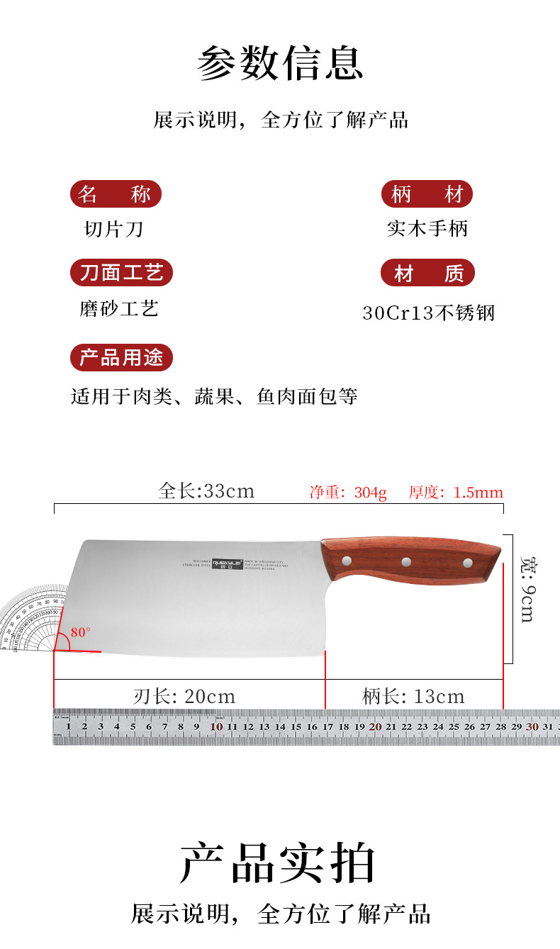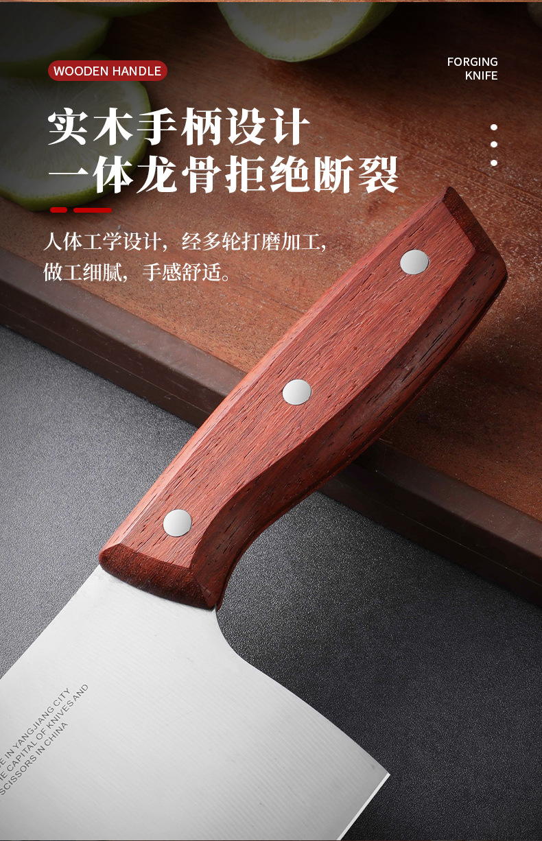 广东阳江不锈钢家用菜刀实木手柄锋利切片刀砂光镜面厨房用切菜刀 投诉