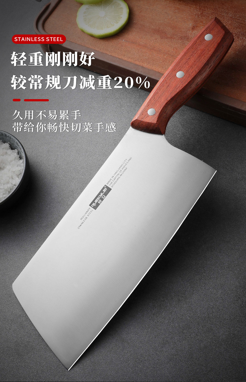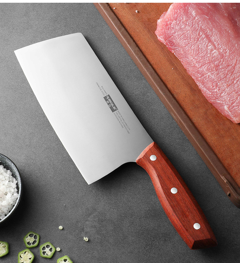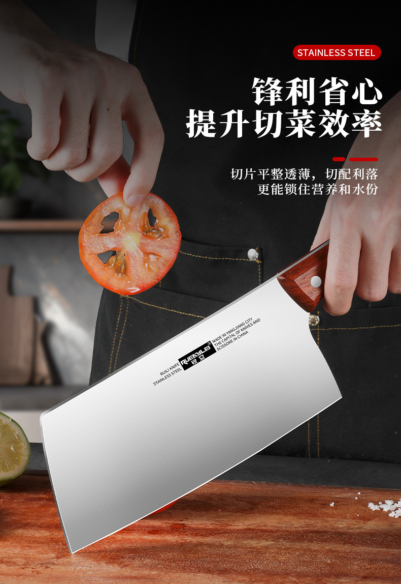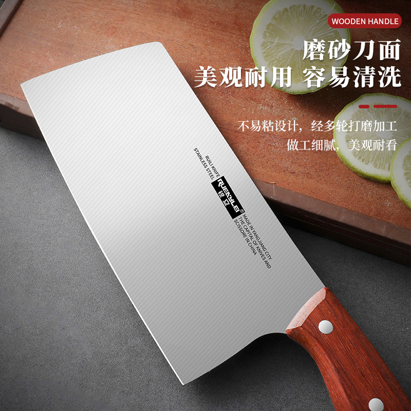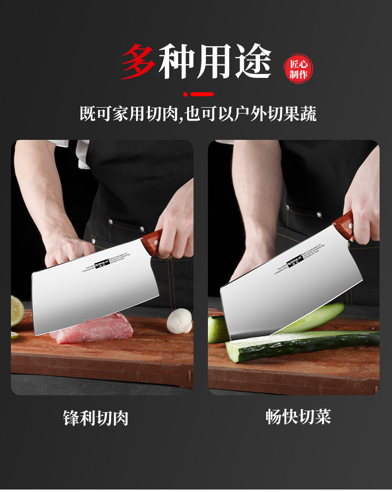 广东阳江不锈钢家用菜刀实木手柄锋利切片刀砂光镜面厨房用切菜刀
