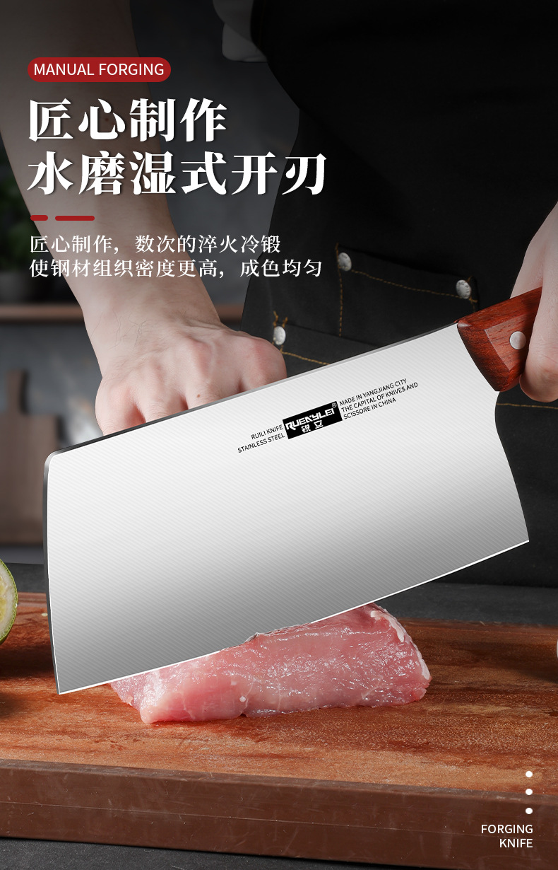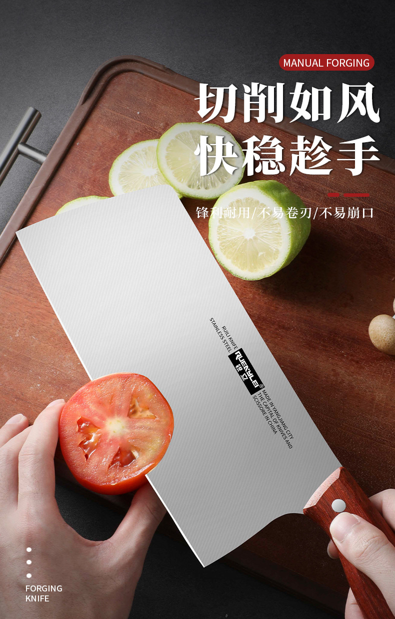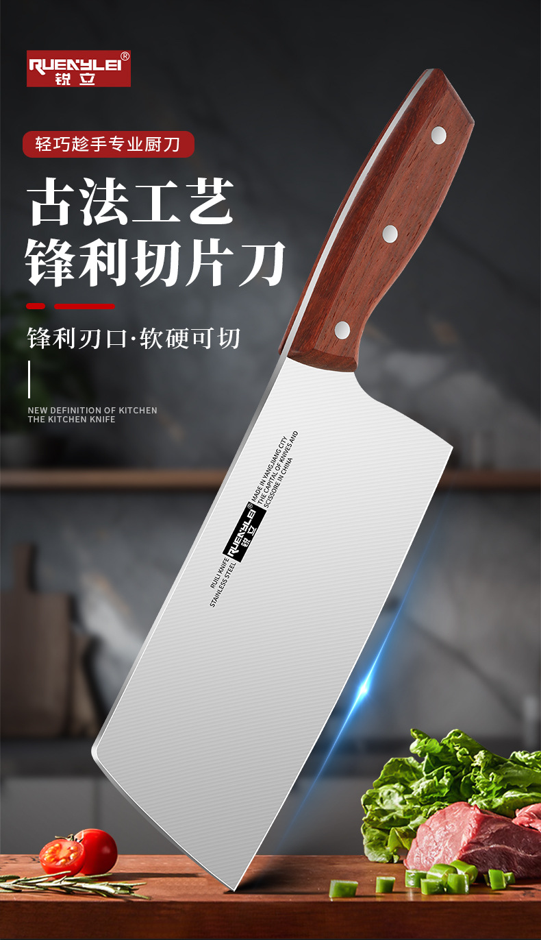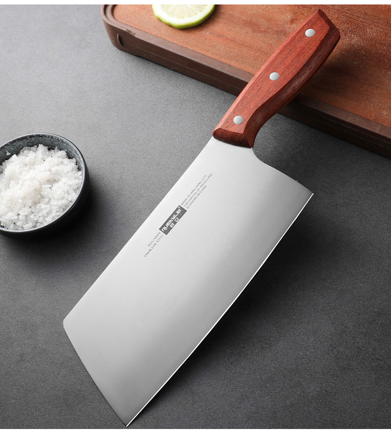 广东阳江不锈钢家用菜刀实木手柄锋利切片刀砂光镜面厨房用切菜刀