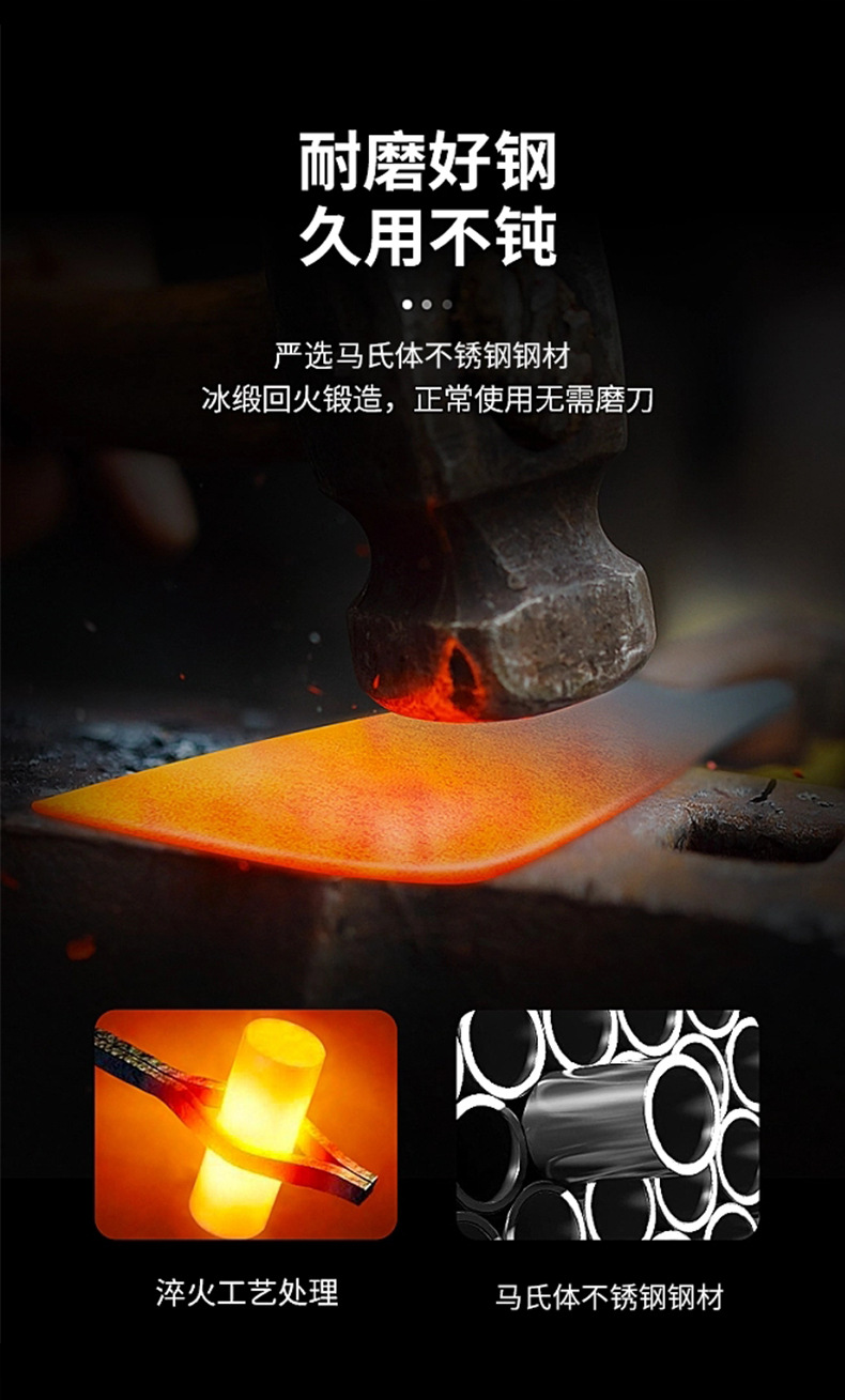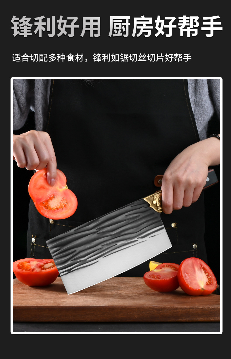 广东阳江不锈钢锻打菜刀厨师专用锋利切片刀厨房切肉家用切菜片肉 投诉