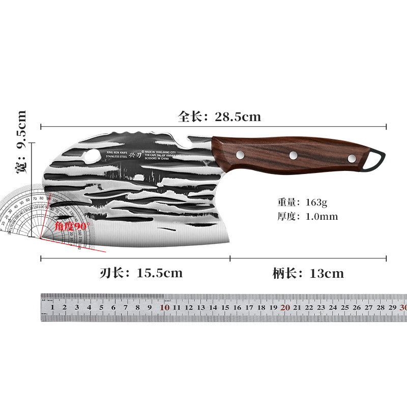 材质: 4铬 刀身材质: 不锈钢 品牌: 兴刃 工艺: 锤纹锻打 产品类别: 菜刀 是否进口: 否 原产国/地区: 广东 货号: XR-CD1044 产地: 阳江 是否有专利: 否 规格: 1.2厘锻打菜刀 有可授权的自有品牌: 是 是否跨境出口专供货源: 否 风格: 新中式 颜色: 塑柄 版权: 无 刀尖角度: 60°以上 刃长: 15.7 刀柄长: 12.8 全刀长最大值: 28.5