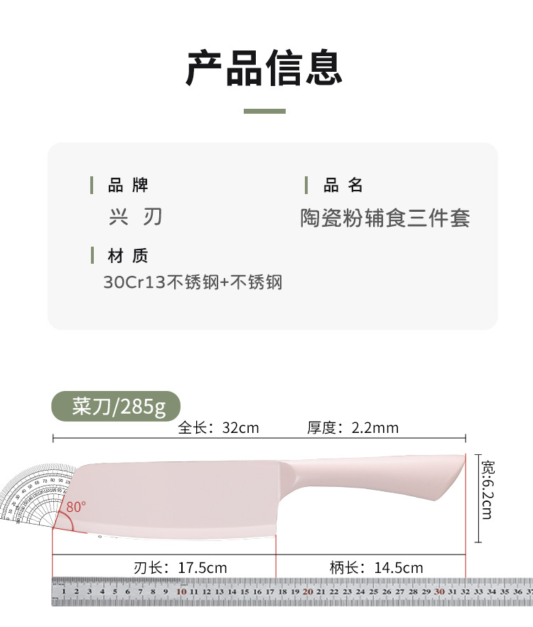材质: 3cr13 刀身材质: 3Cr系列钢 品牌: 兴刃 产品类别: 菜刀 是否进口: 否 原产国/地区: 广东 货号: XR-CD1274 产地: 阳江 价格段: 10/20 是否有专利: 否 规格: 陶瓷钢菜刀,陶瓷钢7英寸三德刀,陶瓷钢5 主要下游平台: 亚马逊,独立站,LAZADA 主要销售地区: 南美,东南亚,北美 有可授权的自有品牌: 是 是否跨境出口专供货源: 是 风格: 新中式 颜色: 花色 版权: 无 刀尖角度: 60°以下 刃长: 17.5