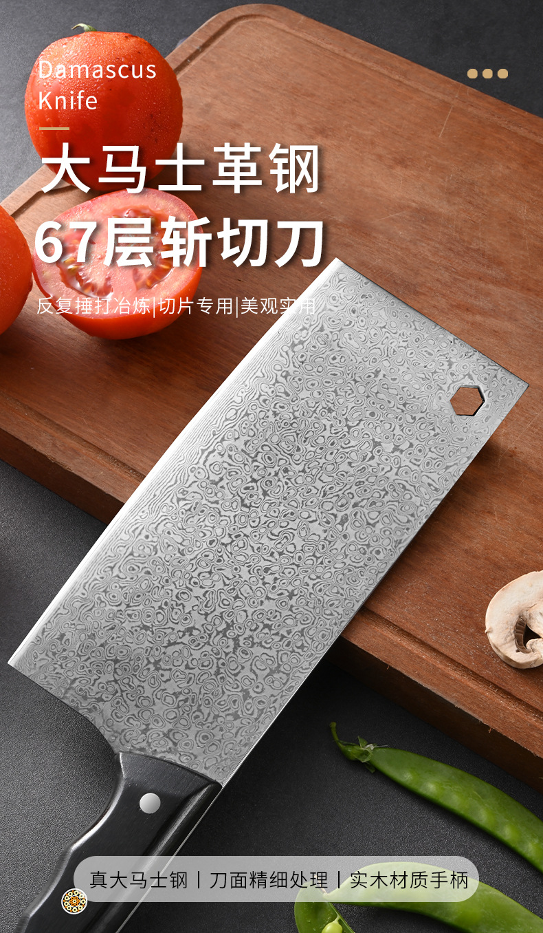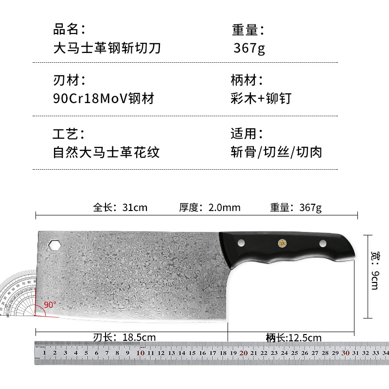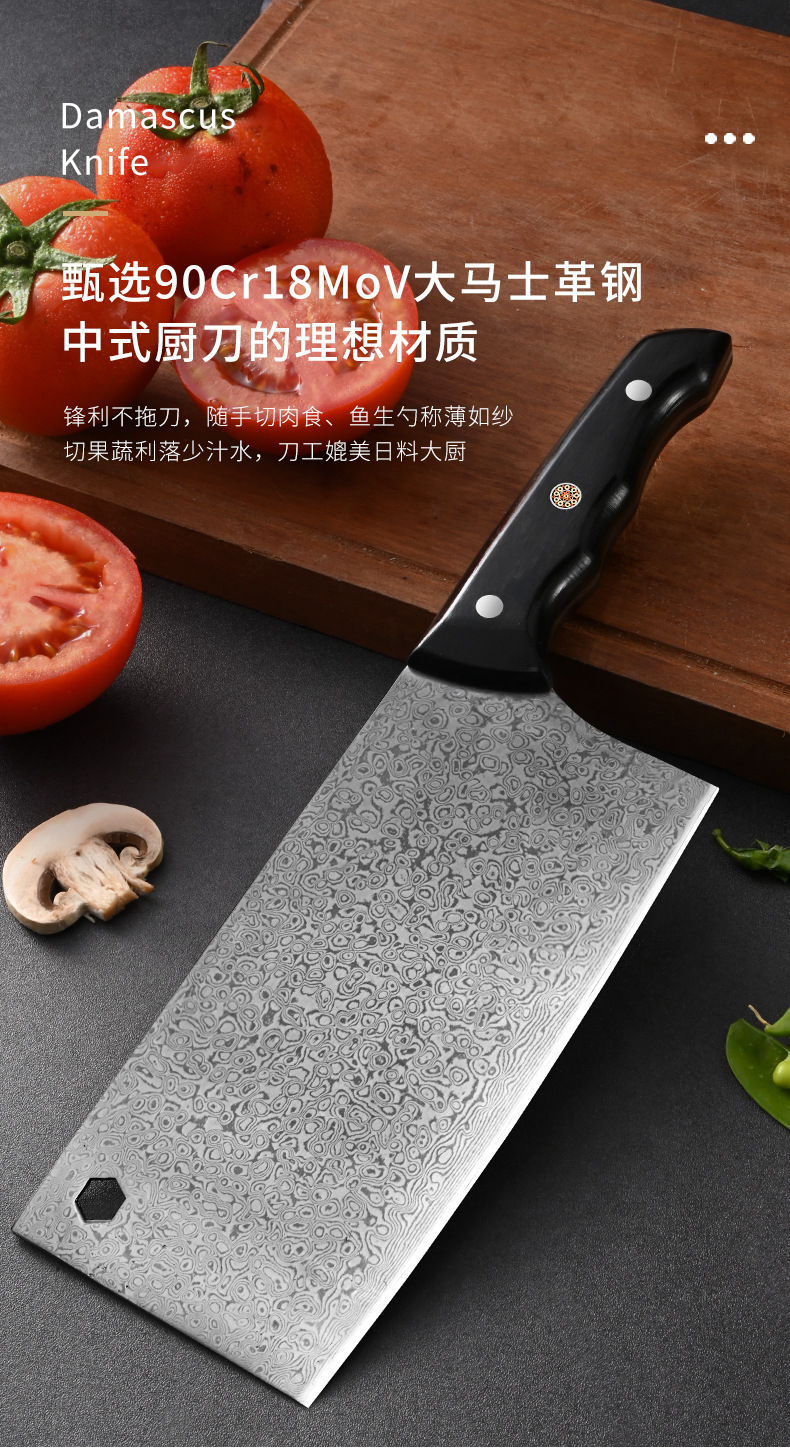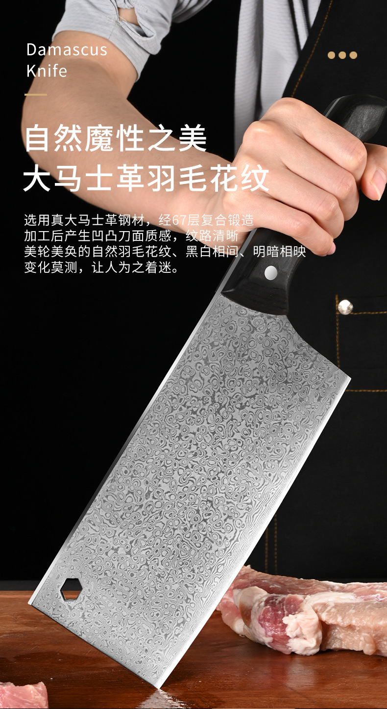 广东阳江大马士革家用菜刀酒店大厨用彩木手柄斩切刀湿式开刃厨刀 投诉