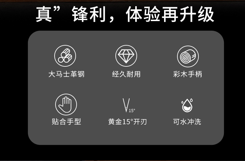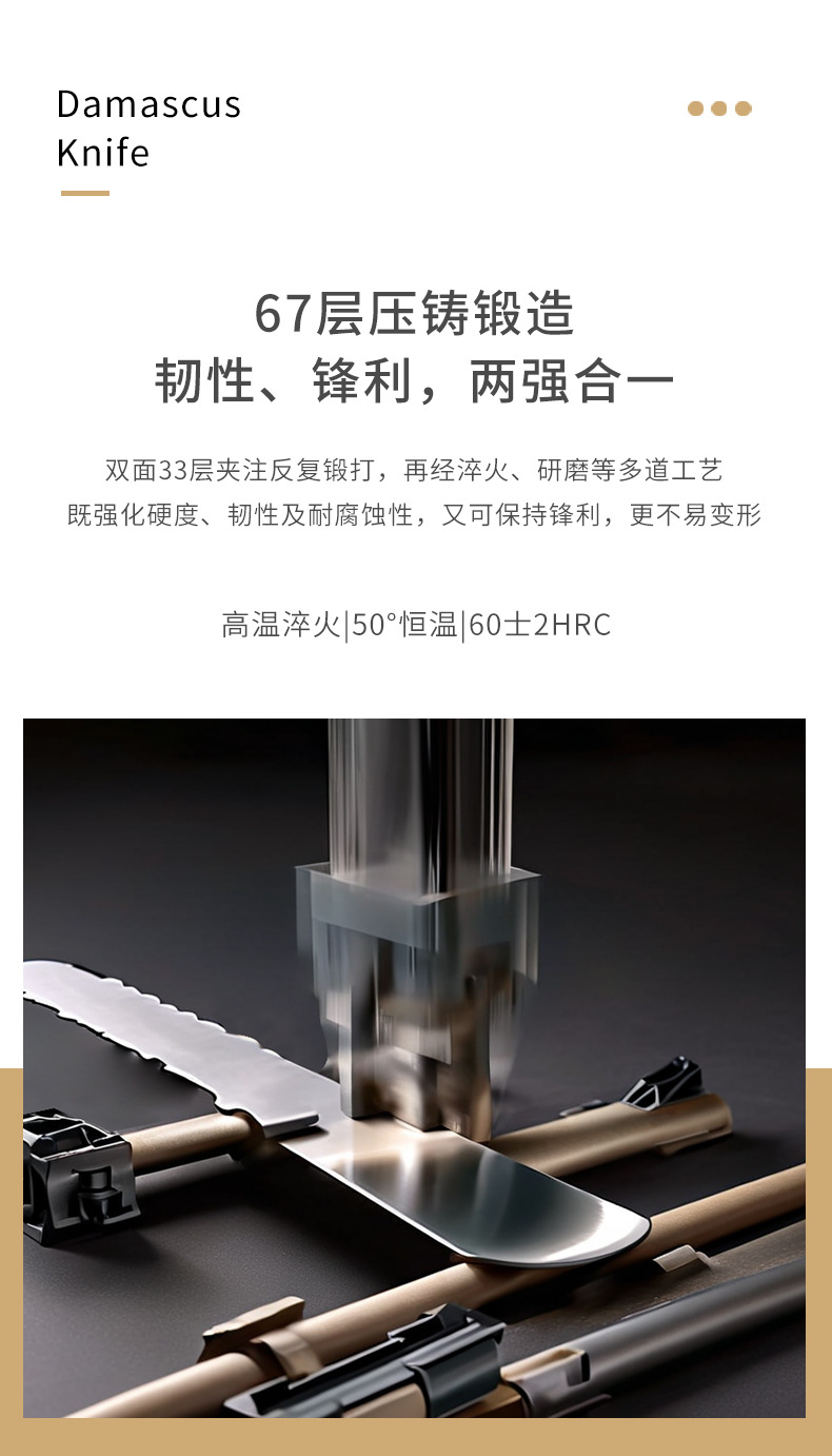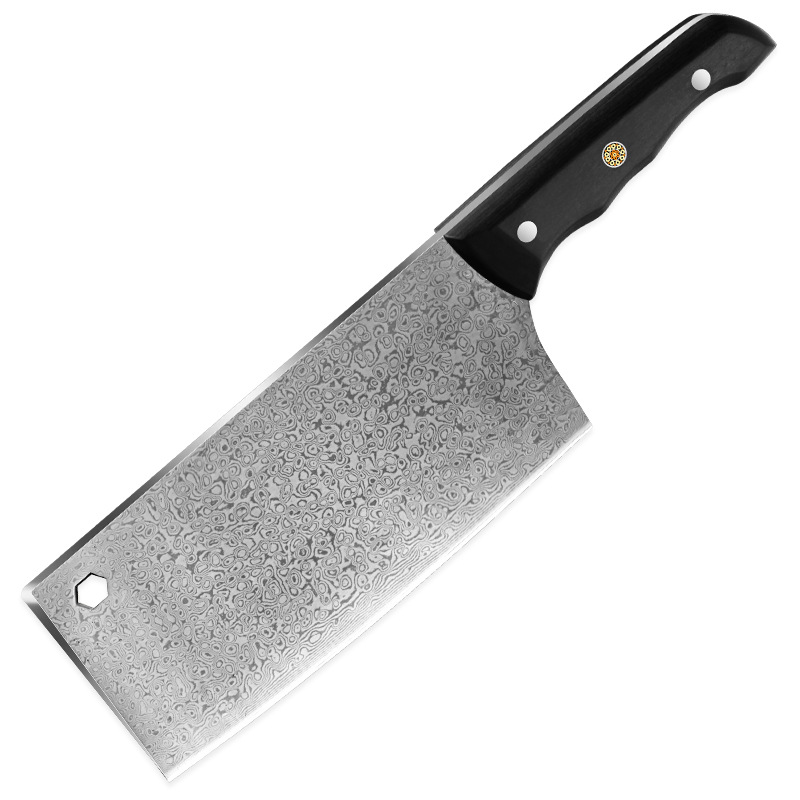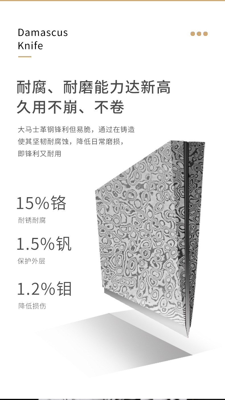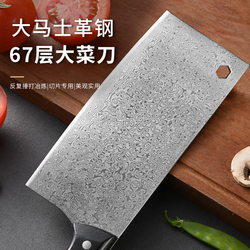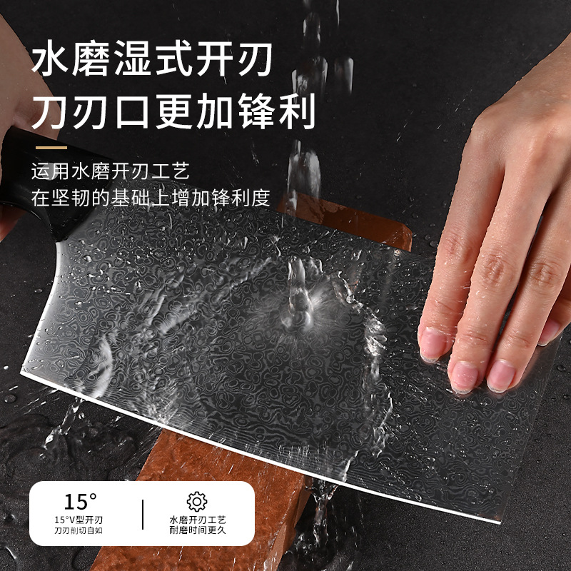 广东阳江大马士革家用菜刀酒店大厨用彩木手柄斩切刀湿式开刃厨刀 投诉