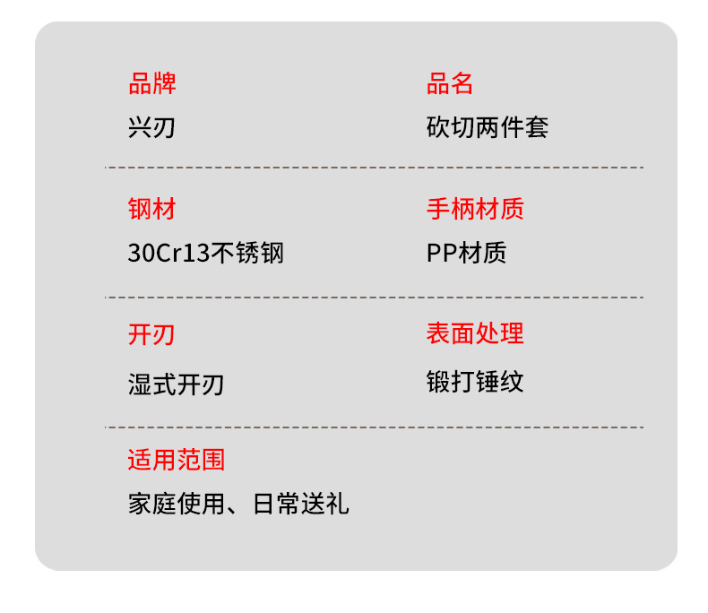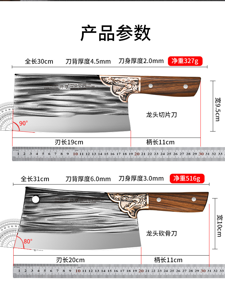 材质: 不锈钢 刀身材质: 3Cr系列钢 品牌: 兴刃 工艺: 常规 产品类别: 斩骨刀 是否进口: 否 原产国/地区: 广东 货号: XR-CD6275 产地: 阳江 价格段: 10-20元 是否有专利: 否 规格: 电镀龙头条纹菜刀,电镀龙头条纹砍刀 主要下游平台: 亚马逊,独立站,LAZADA 主要销售地区: 南美,东南亚,北美 有可授权的自有品牌: 是 是否跨境出口专供货源: 是 风格: 中国传统 颜色: 灰色 版权: 无 刀尖角度: 60°以上