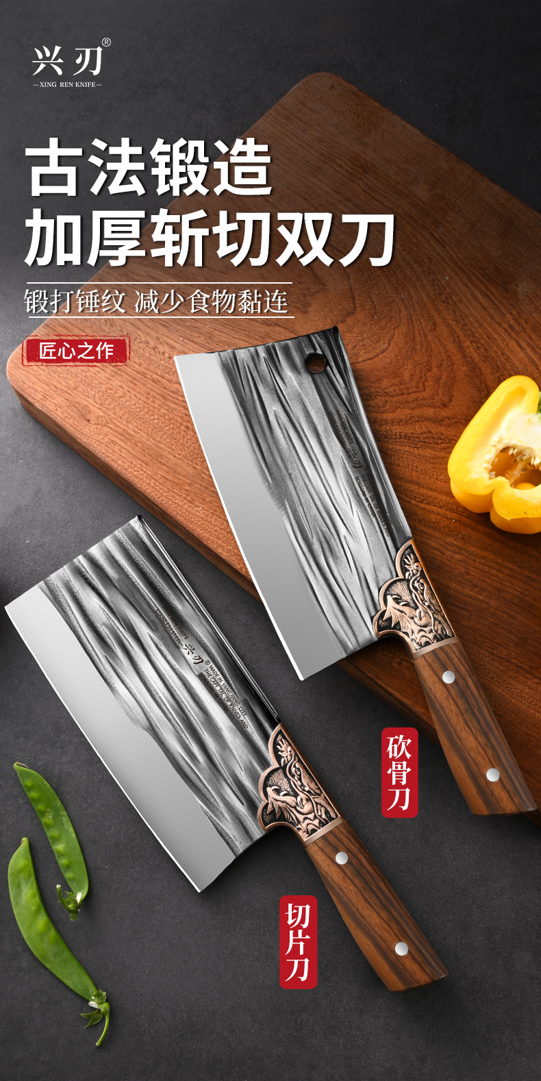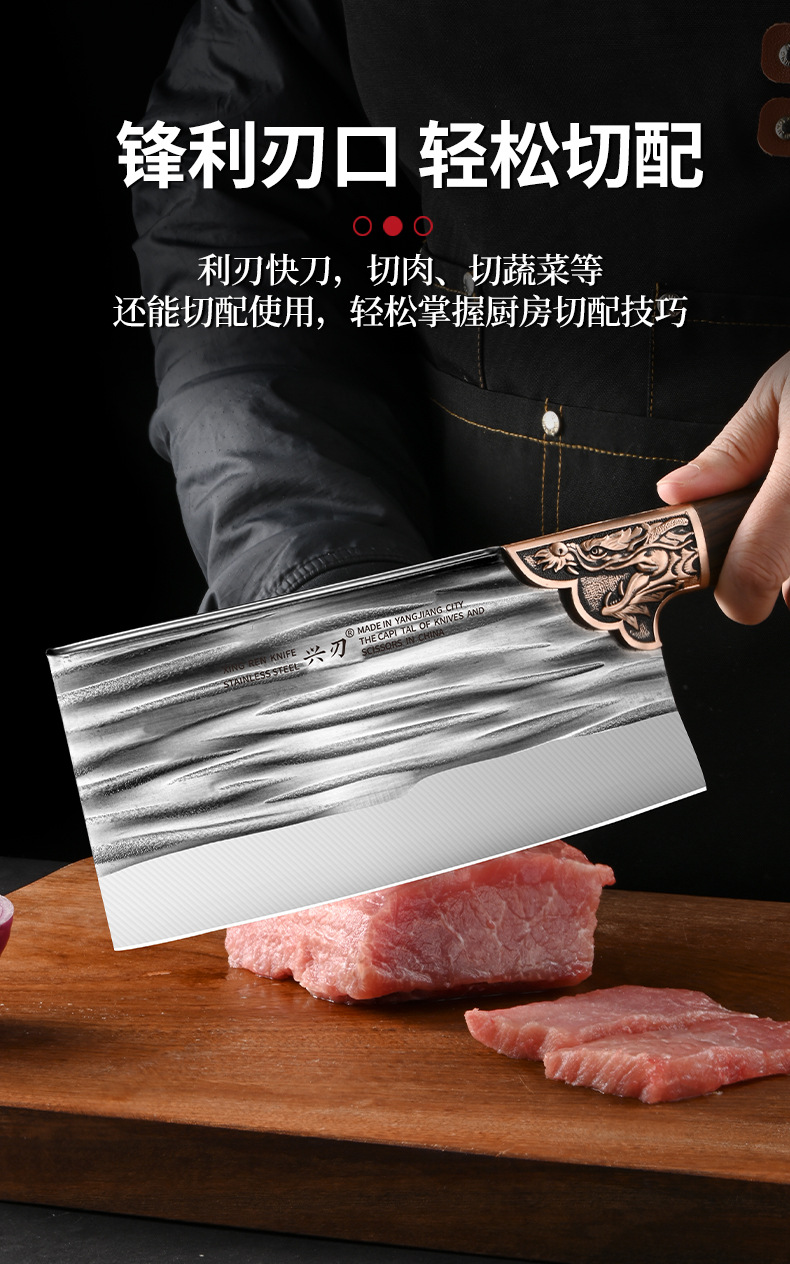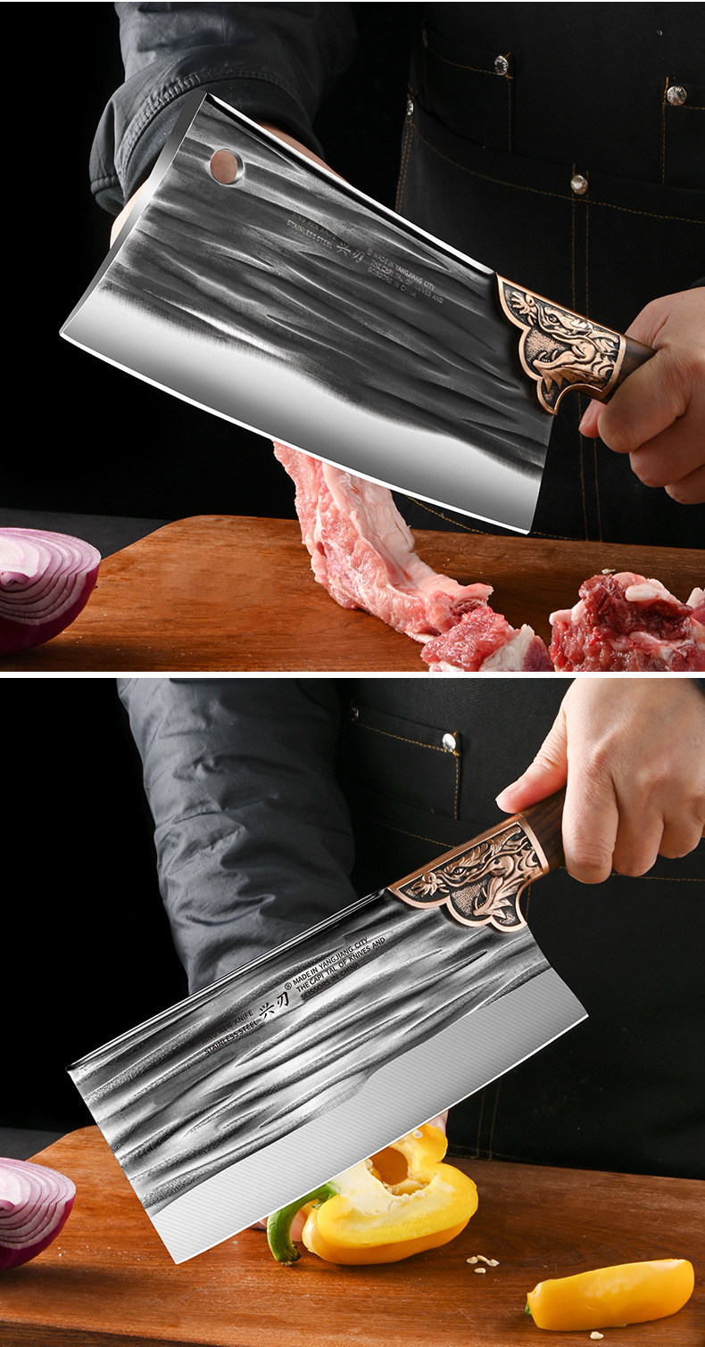 阳江厂家专供多功能锋利家用切菜刀锻打不锈钢材质制作斩切砍骨刀