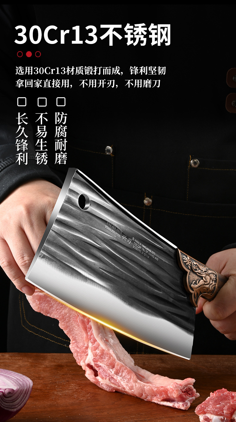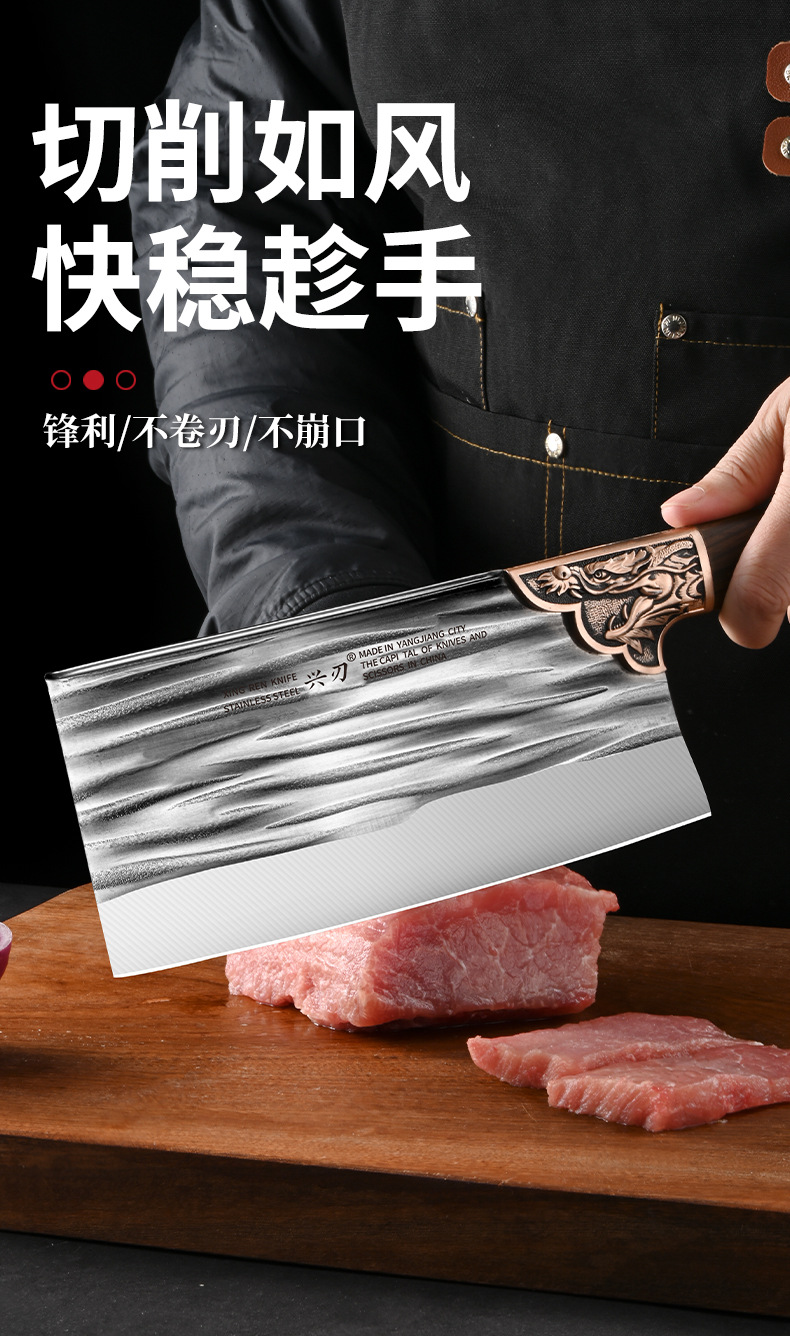阳江厂家专供多功能锋利家用切菜刀锻打不锈钢材质制作斩切砍骨刀 投诉