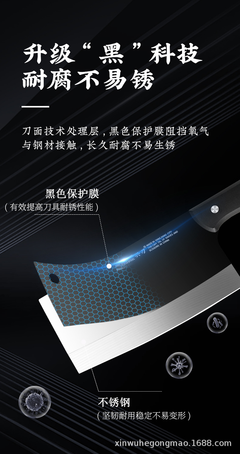 阳江厂家多功能锋利菜刀发黑面防氧化切菜刀家用厨房易清洗切片刀 投诉