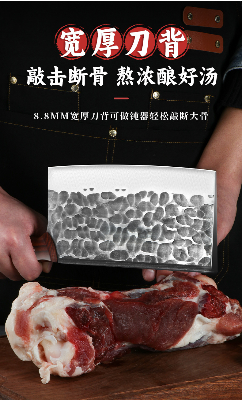 屠夫专用砍骨刀不锈钢加厚斩大骨刀具酒店厨房锻打剁牛羊骨刀批发