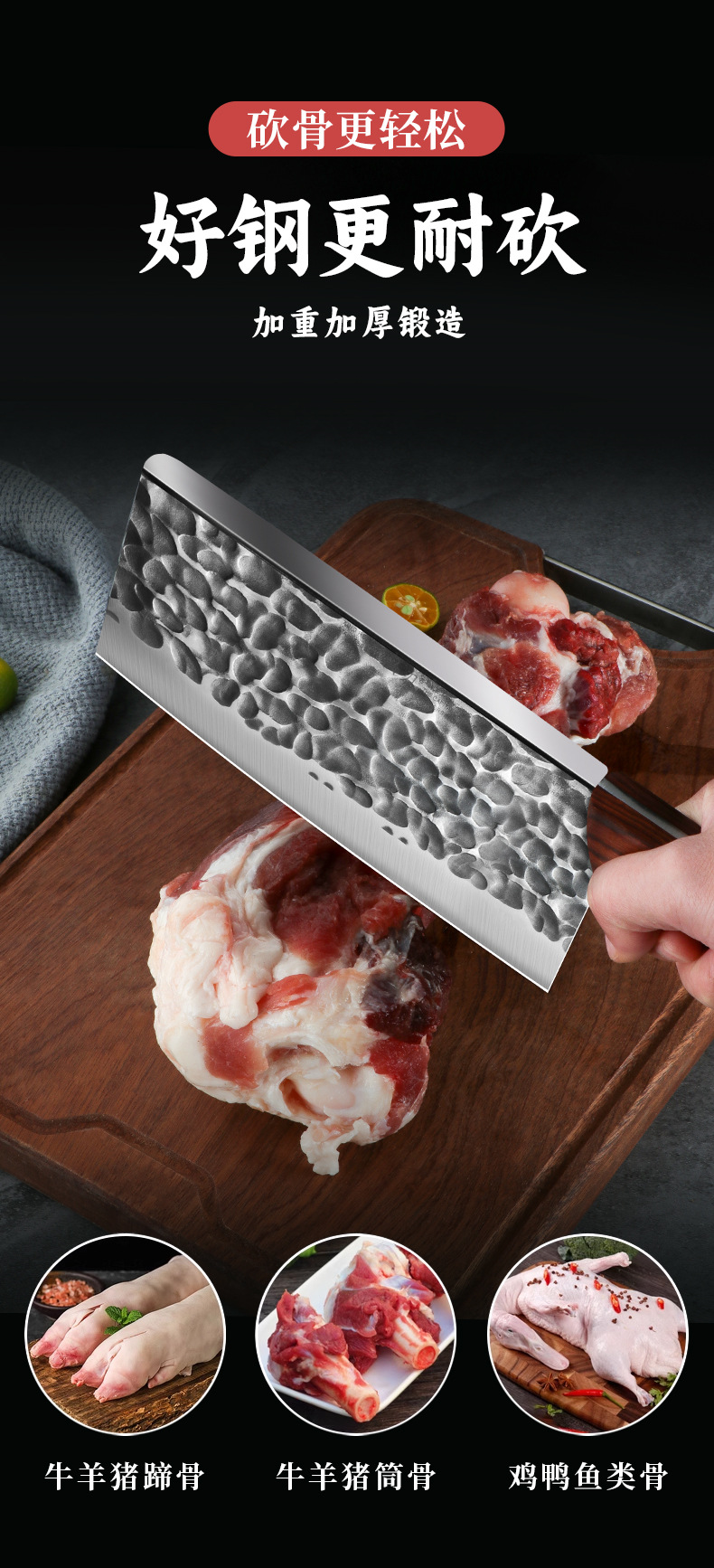 屠夫专用砍骨刀不锈钢加厚斩大骨刀具酒店厨房锻打剁牛羊骨刀批发 投诉