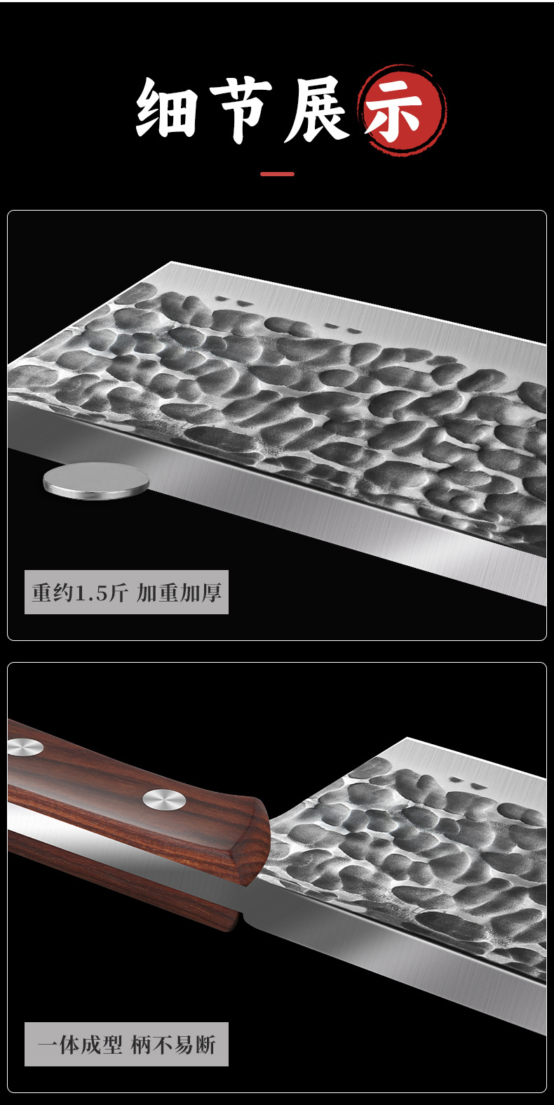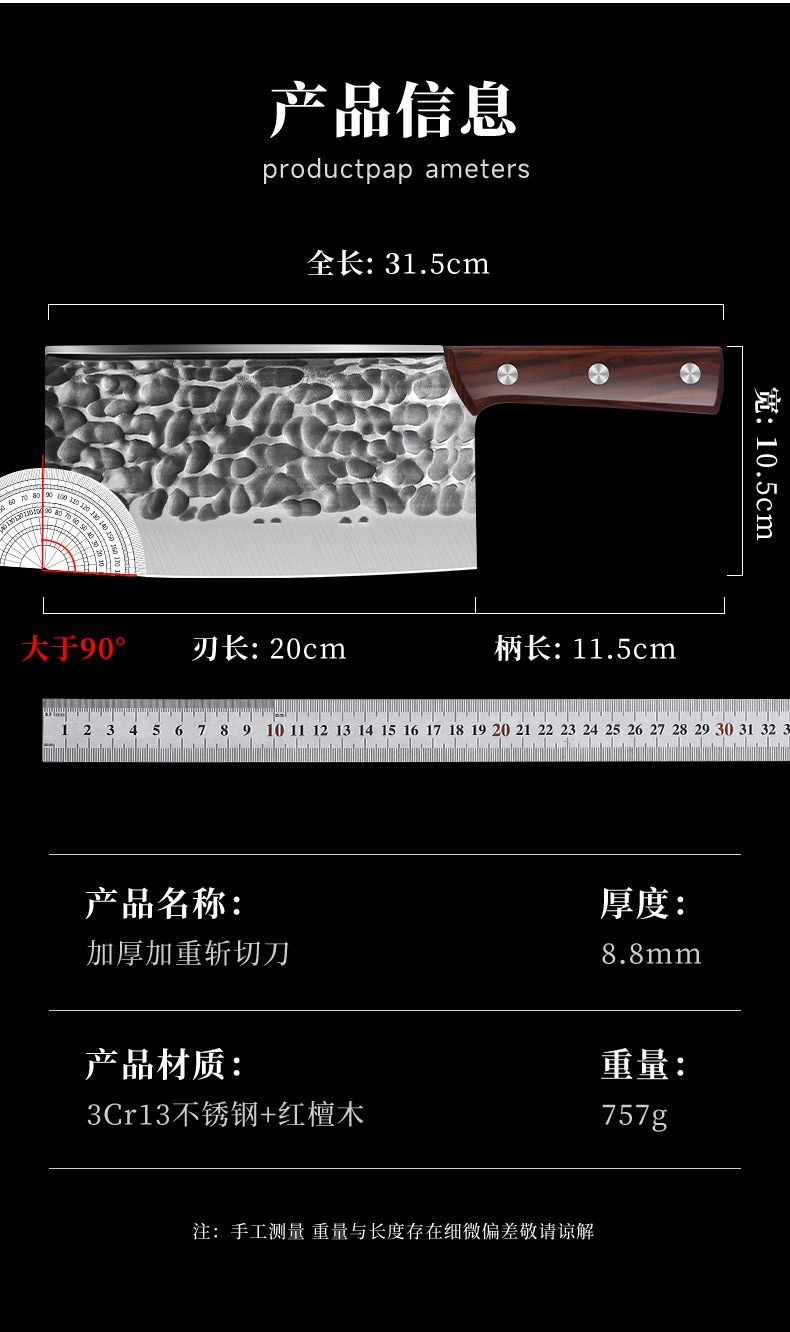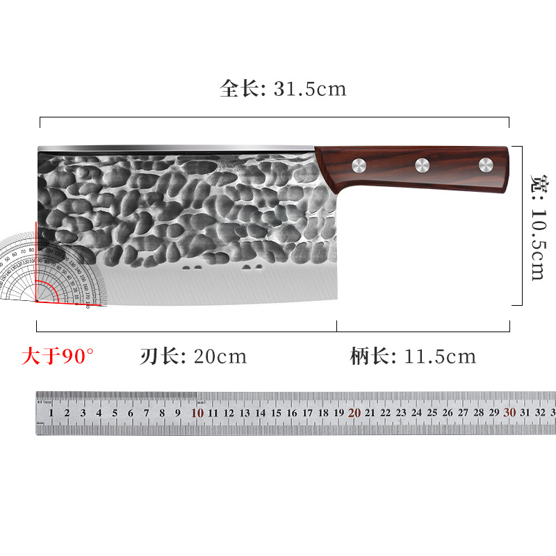 刀身材质: 不锈钢 材质: 不锈钢 价格段: 30-40元 产品类别: 多用刀 是否进口: 否 品牌: 兴刃 货号: XR-ZQD6150 原产国/地区: 广东 产地: 阳江 是否有专利: 否 规格: 8.8厘加厚红檀木柄,5厘加厚棕柄斩切刀 是否跨境出口专供货源: 否 有可授权的自有品牌: 否 风格: 复古 颜色: 斩切刀 刀尖角度: 60°以上 刃长: 20 刀柄长: 11.5 全刀长最大值: 31.5 工艺: 复古 仿古 锻打
