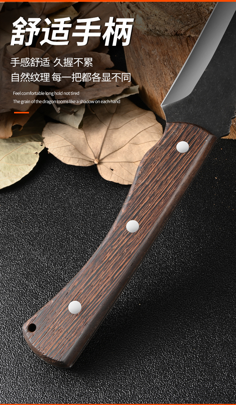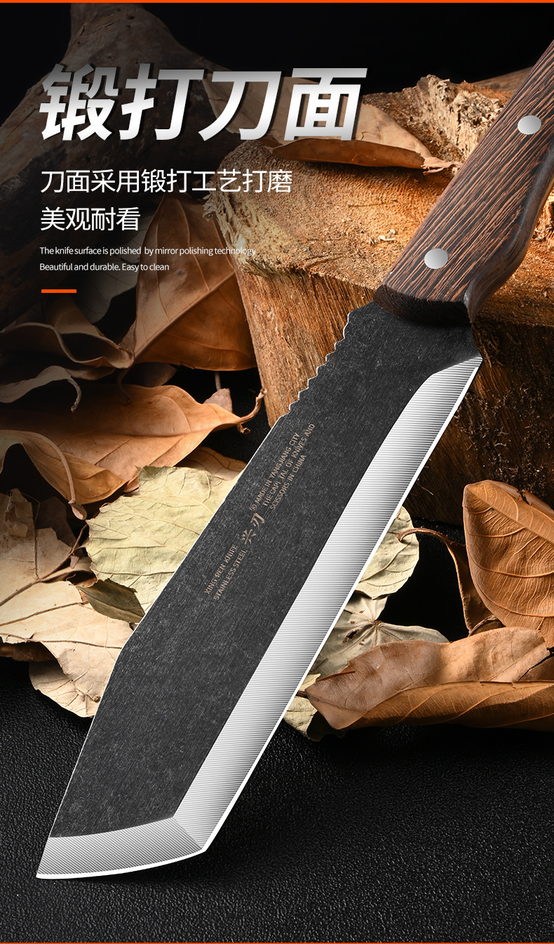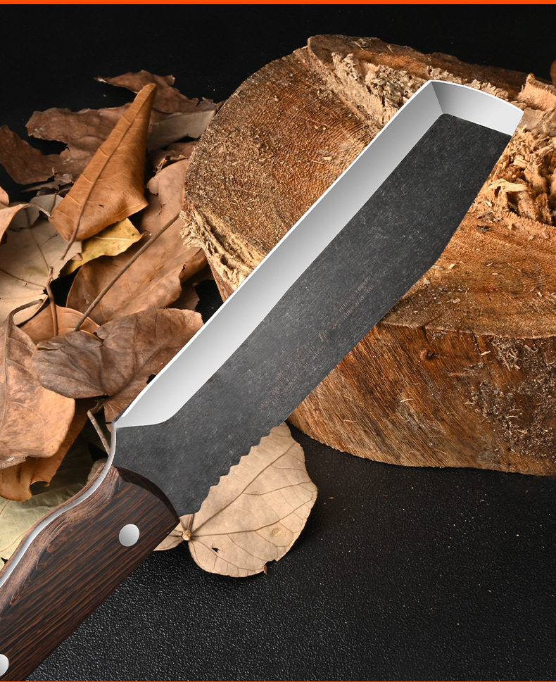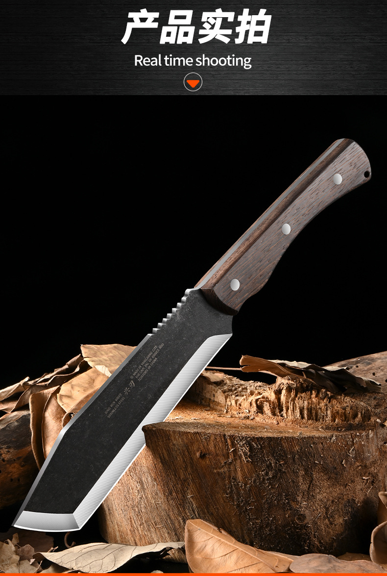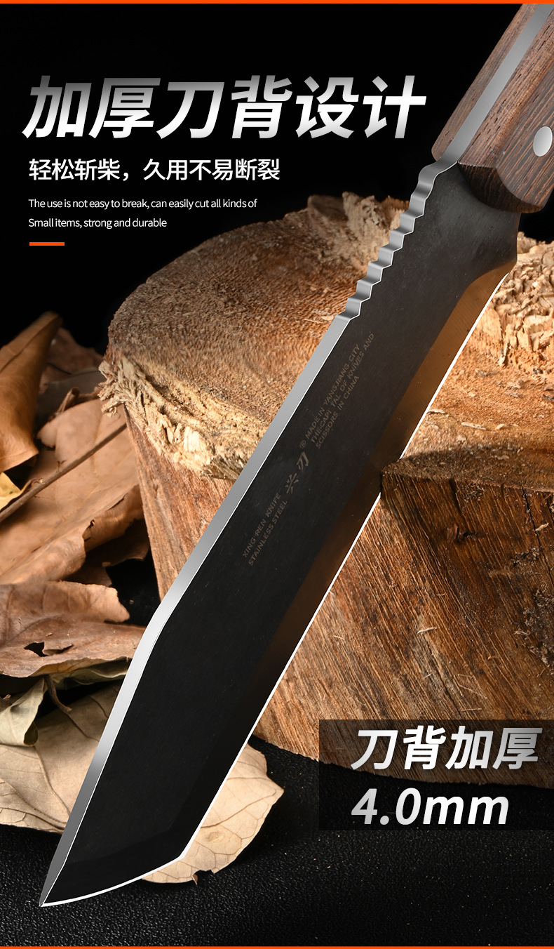 厂家专供户外野营探险不锈钢砍柴刀加厚刀背鸡翅木手柄斩柴剁骨刀