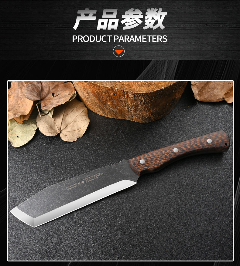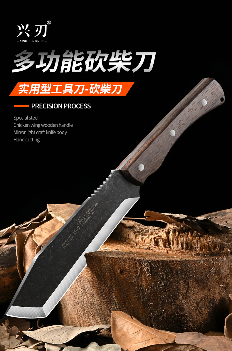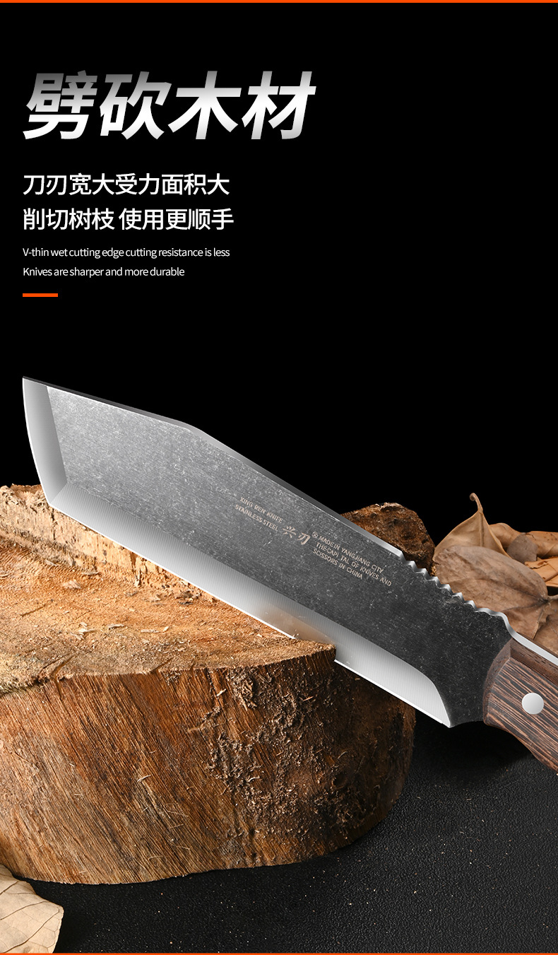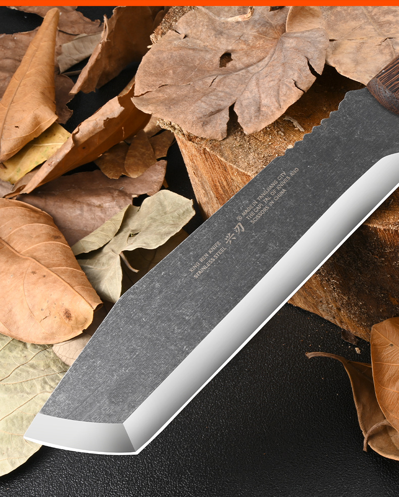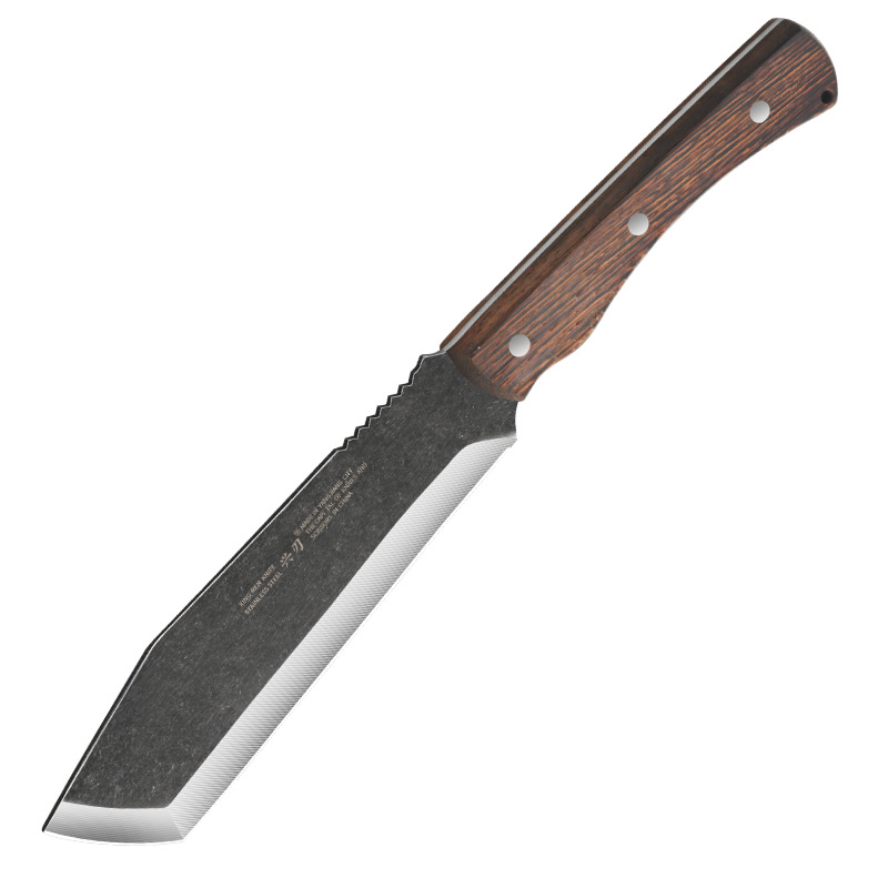 厂家专供户外野营探险不锈钢砍柴刀加厚刀背鸡翅木手柄斩柴剁骨刀