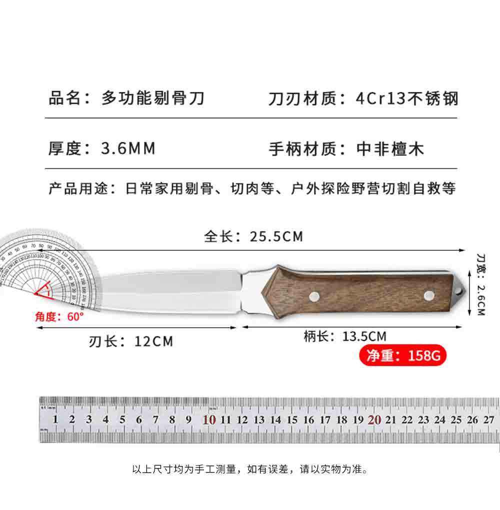 厂家专供多功能锋利剔骨刀镜光刀面设计中非檀木手柄水果刀厨用刀 投诉