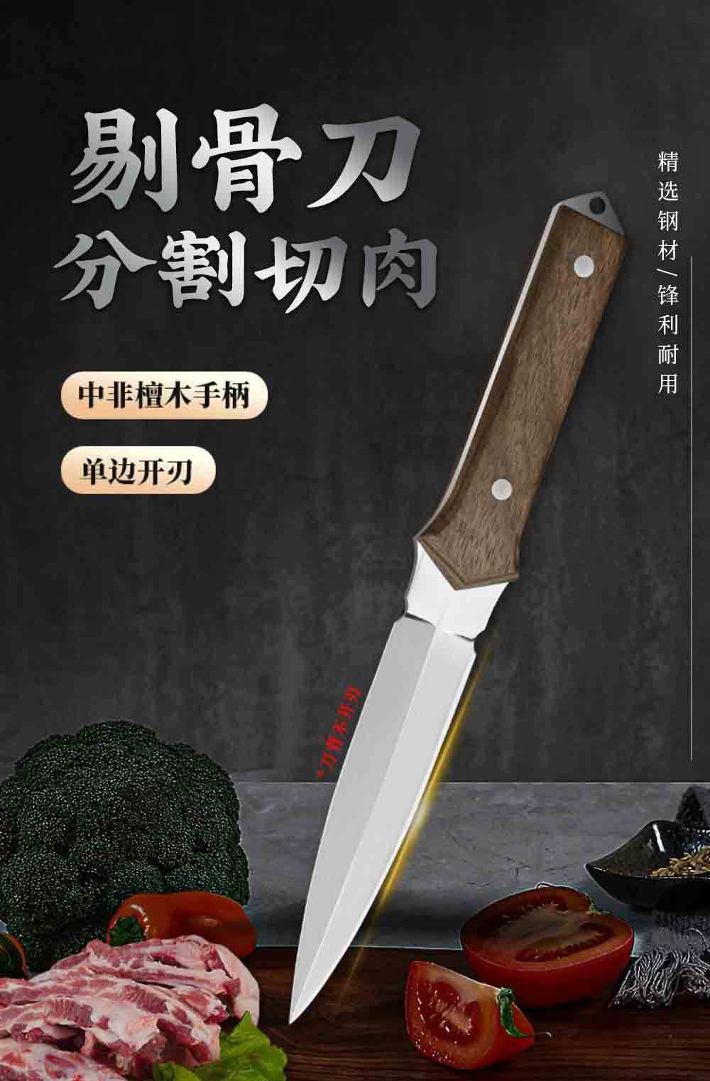 厂家专供多功能锋利剔骨刀镜光刀面设计中非檀木手柄水果刀厨用刀