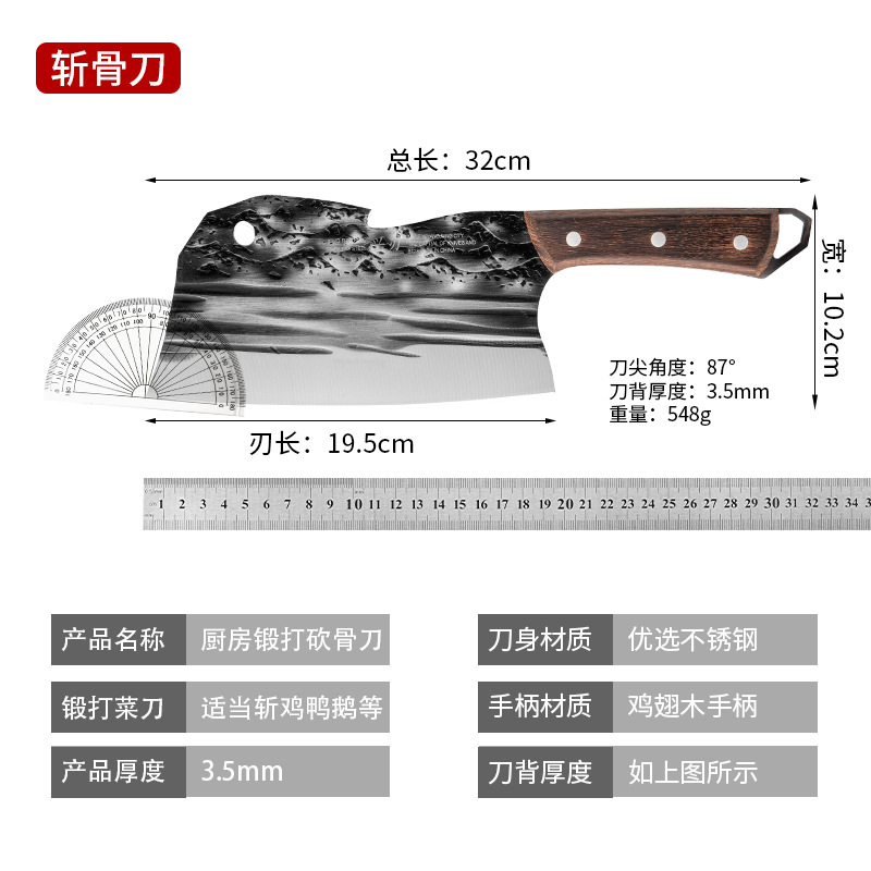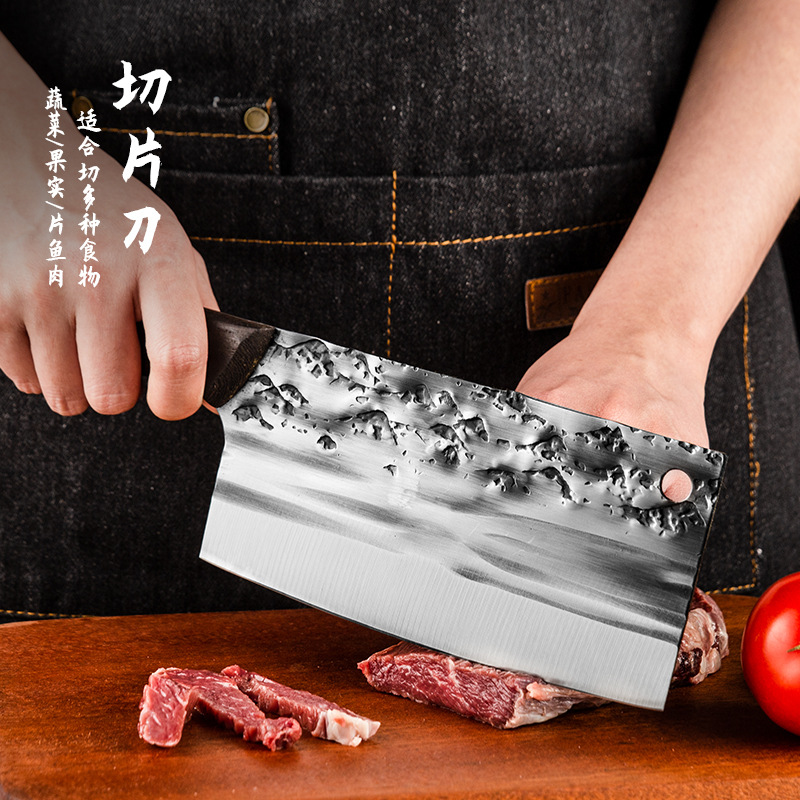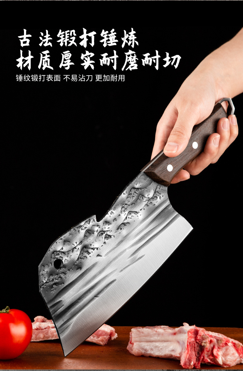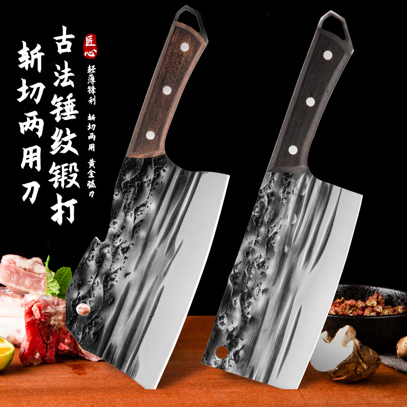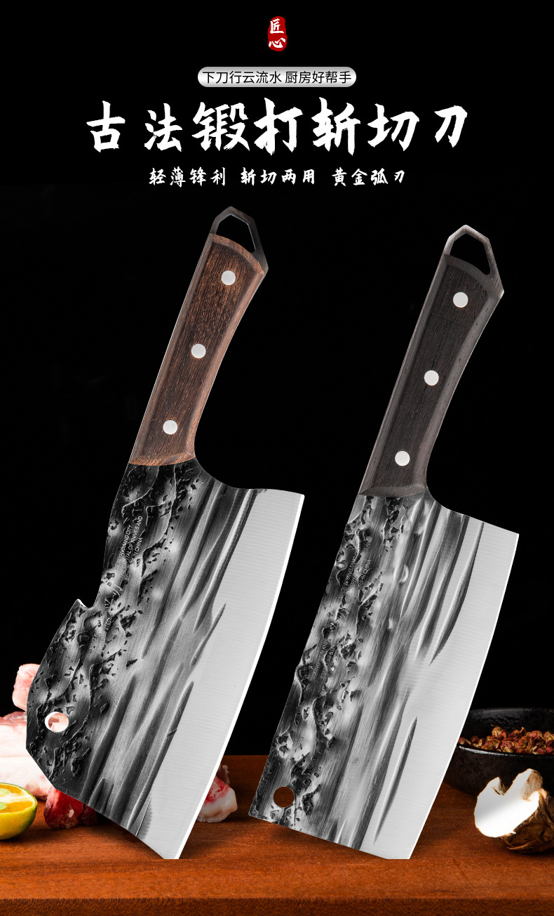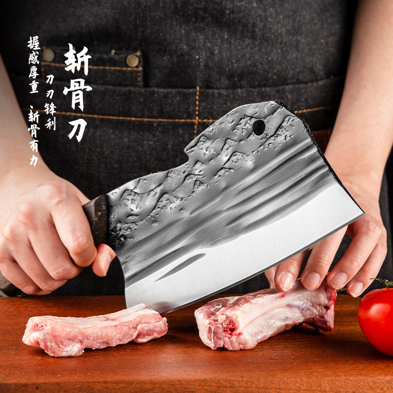古法锻打切菜刀家用中式砍排骨剁刀厨师用切片刀剁鸡鸭跑江湖菜刀