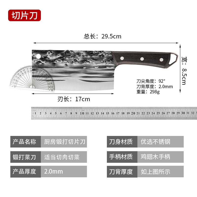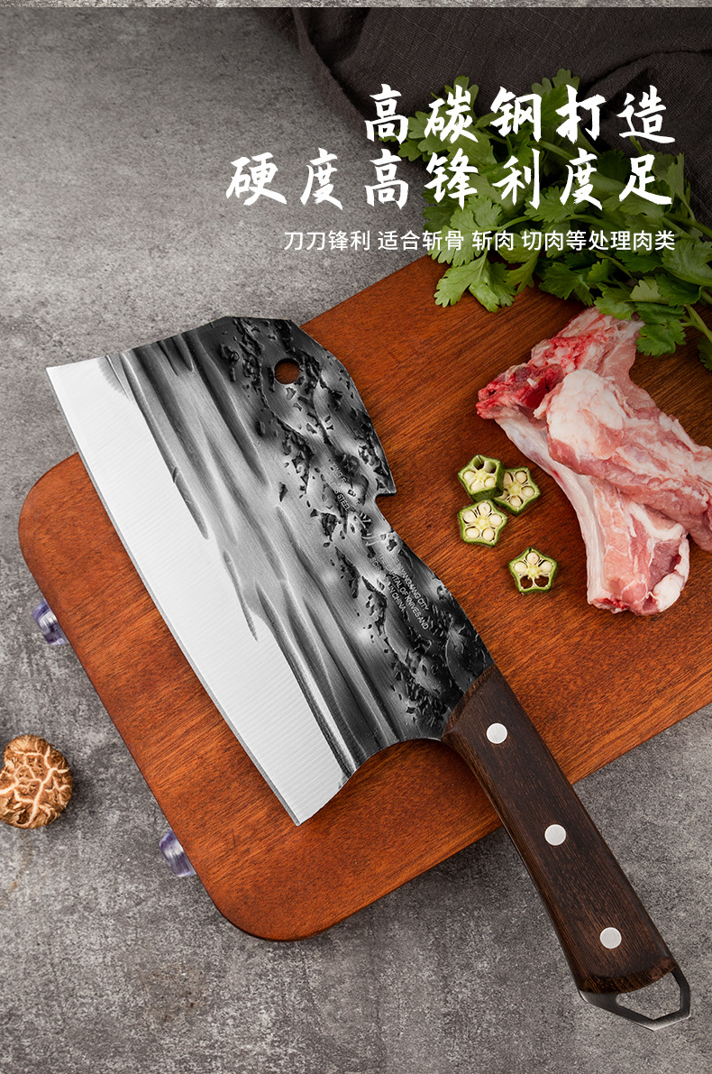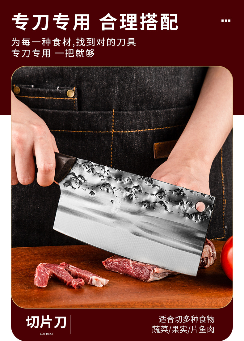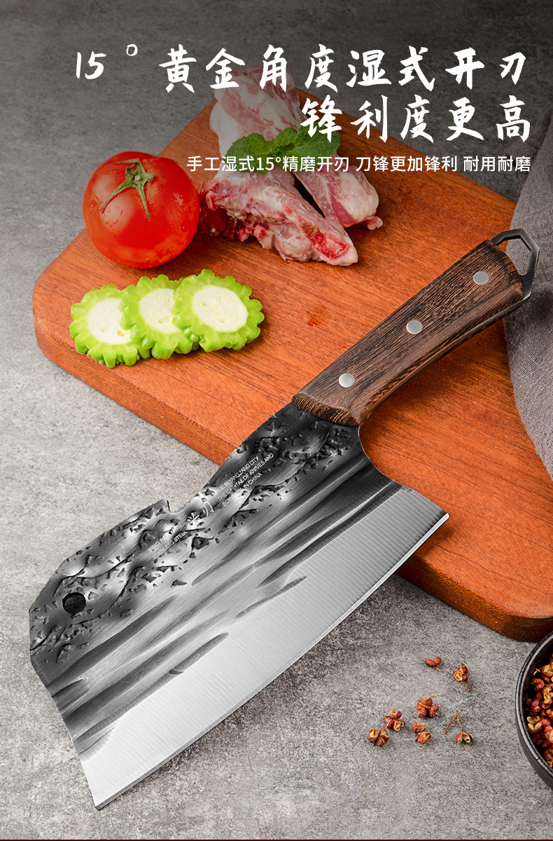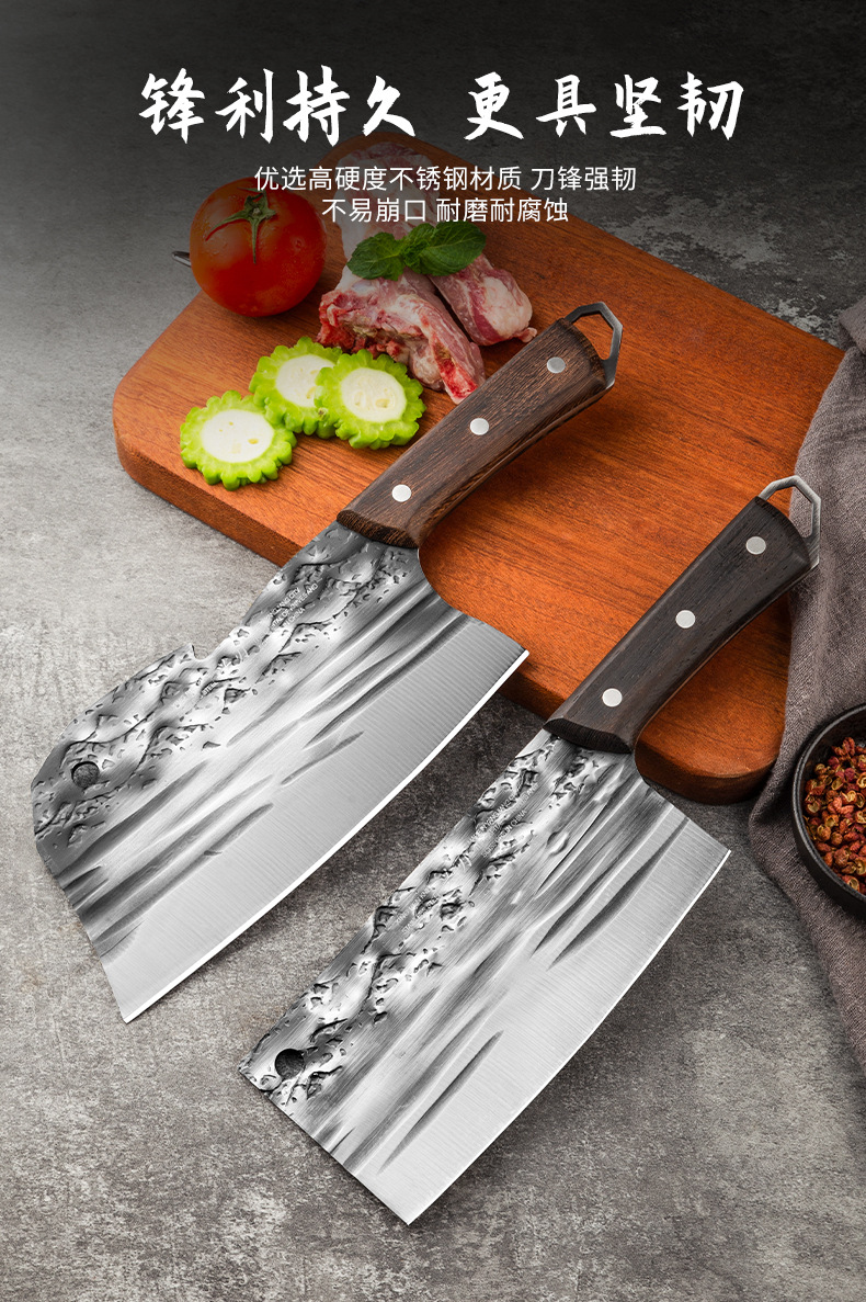古法锻打切菜刀家用中式砍排骨剁刀厨师用切片刀剁鸡鸭跑江湖菜刀