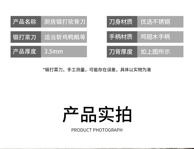 古法锻打切菜刀家用中式砍排骨剁刀厨师用切片刀剁鸡鸭跑江湖菜刀 投诉