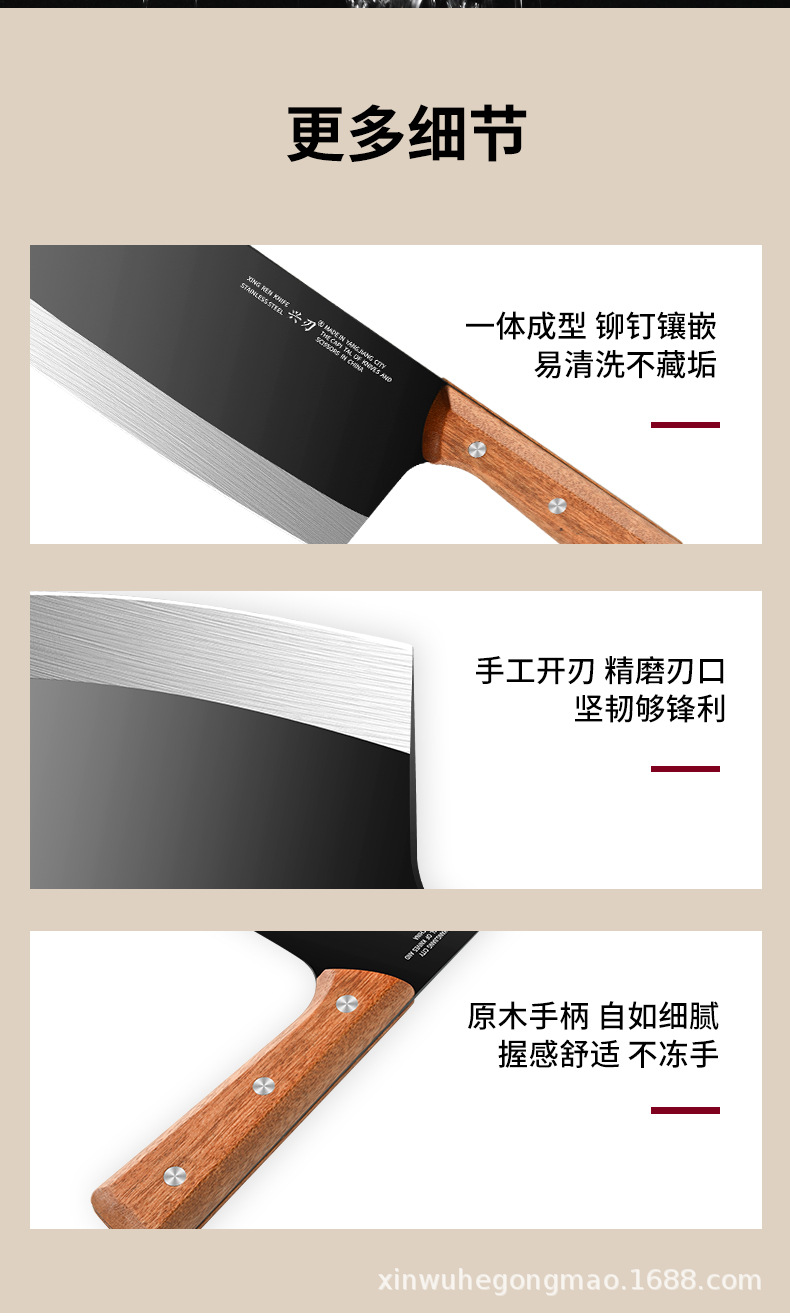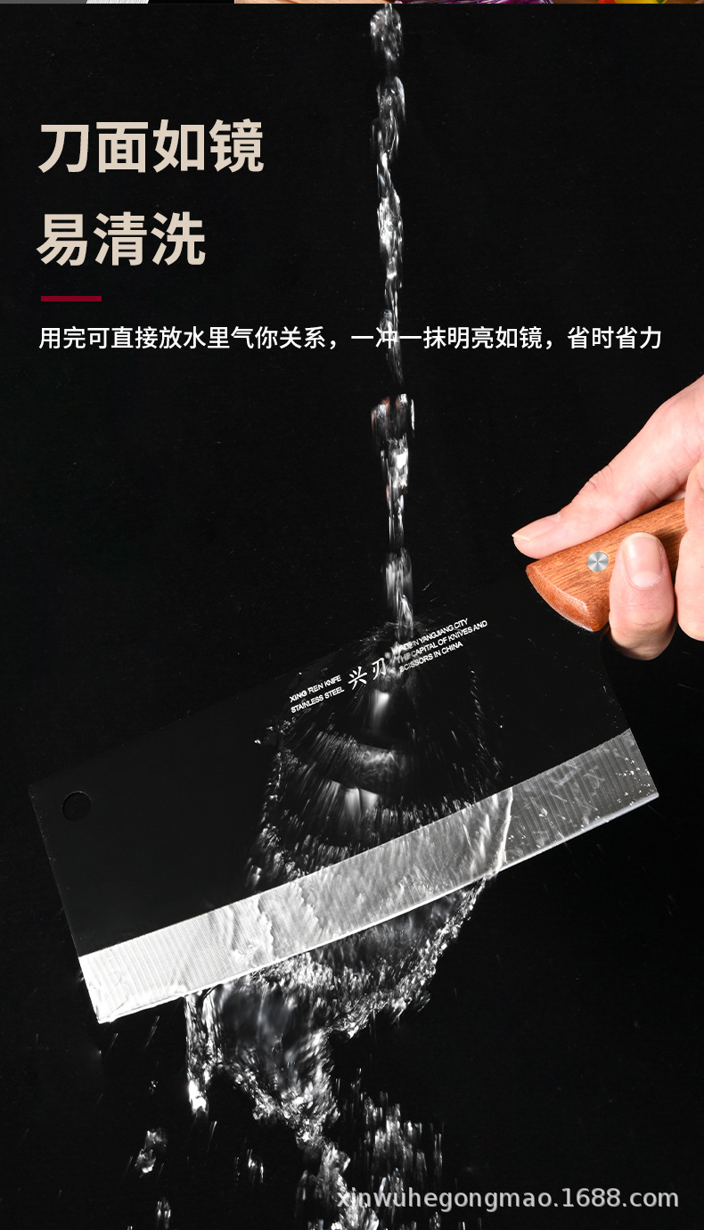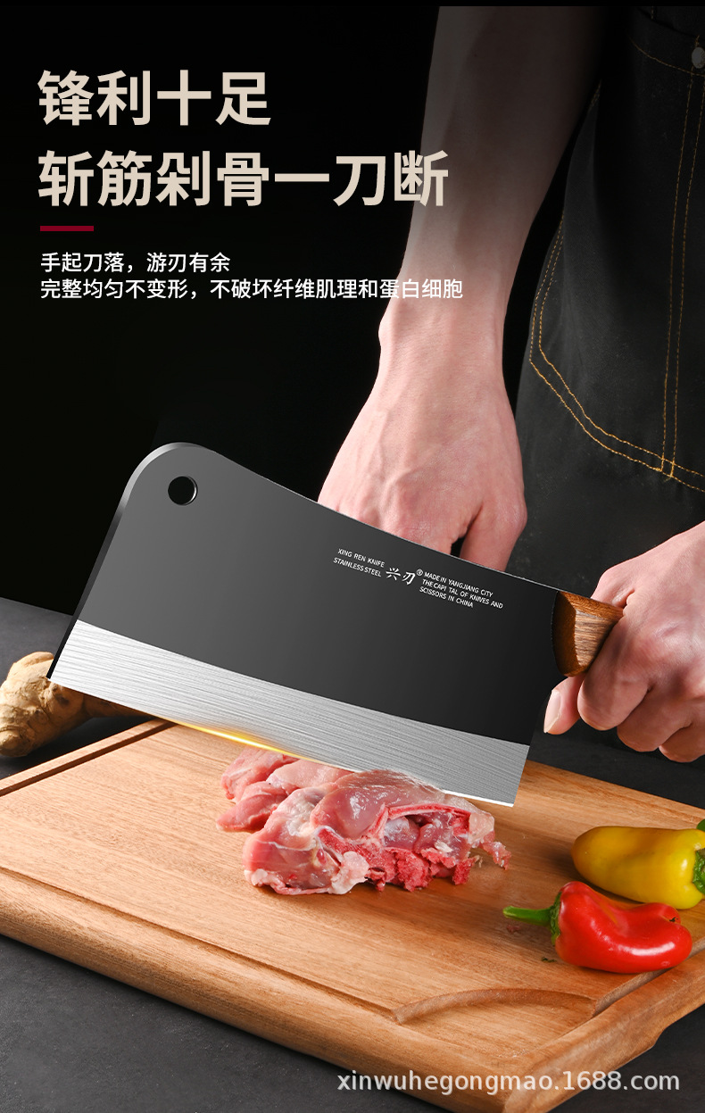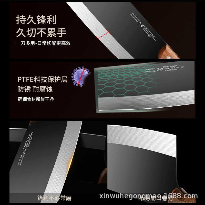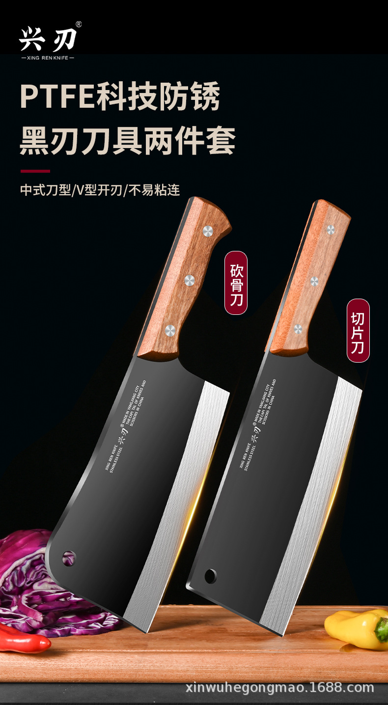 材质: 不锈钢 刀身材质: 3Cr系列钢 品牌: 兴刃 产品类别: 菜刀 是否进口: 否 原产国/地区: 广东 货号: XR-CD6177 产地: 阳江 价格段: 10-20 是否有专利: 否 规格: A88款不粘菜刀,A88款不粘砍刀 主要下游平台: 亚马逊,独立站,LAZADA 主要销售地区: 东南亚,北美,中东 有可授权的自有品牌: 是 是否跨境出口专供货源: 是 风格: 新中式 颜色: 黑色 版权: 无 刀尖角度: 60°以上 刃长: 19cm