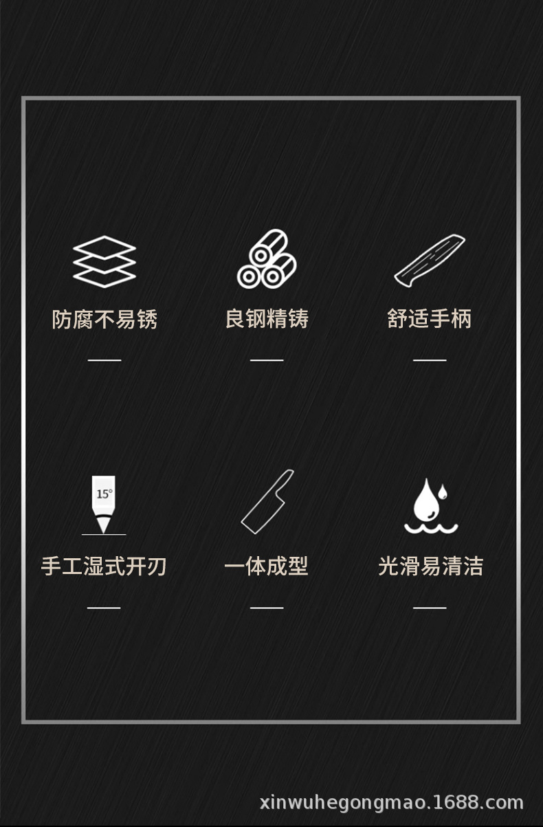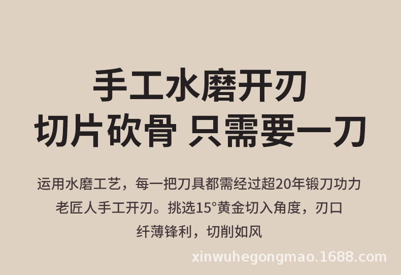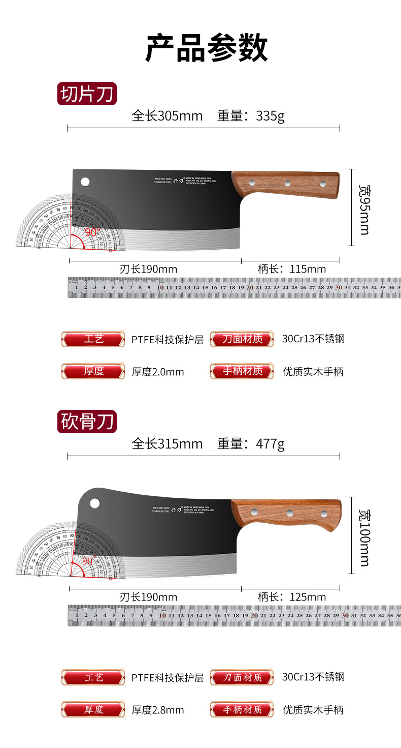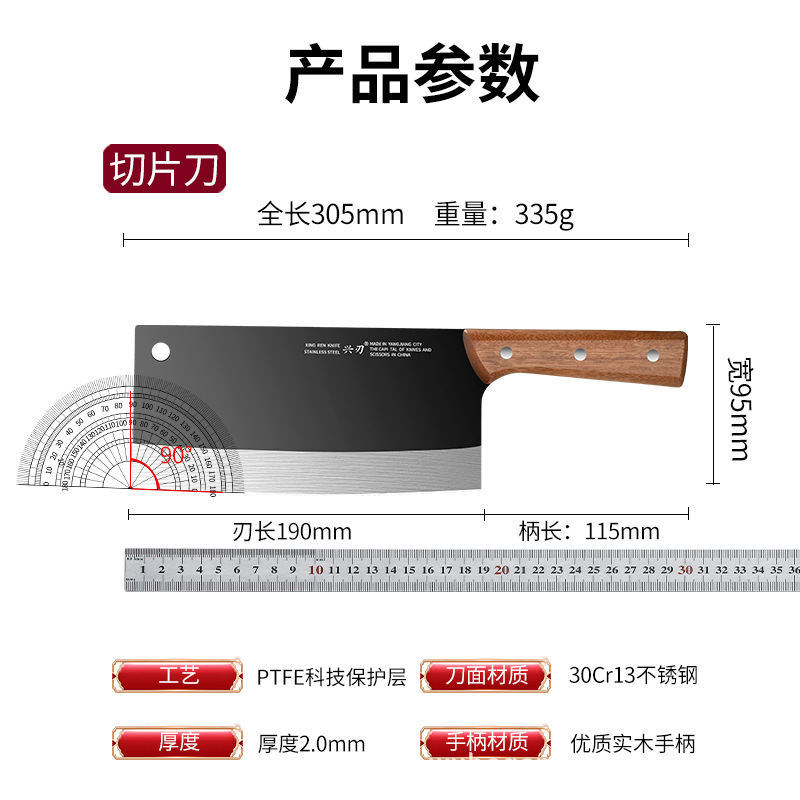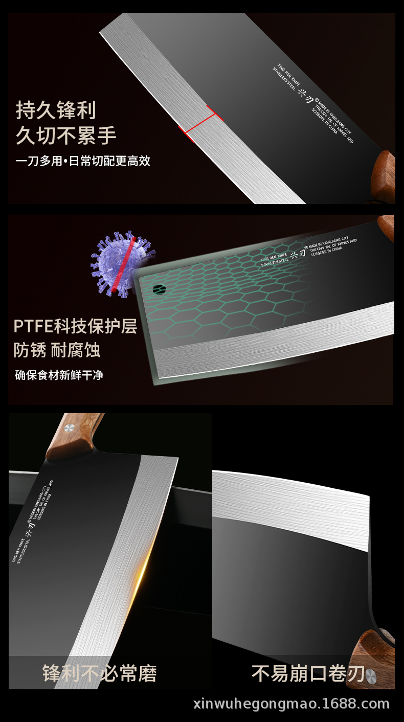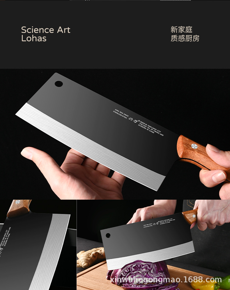 材质: 不锈钢 刀身材质: 3Cr系列钢 品牌: 兴刃 产品类别: 菜刀 是否进口: 否 原产国/地区: 广东 货号: XR-CD6177 产地: 阳江 价格段: 10-20 是否有专利: 否 规格: A88款不粘菜刀,A88款不粘砍刀 主要下游平台: 亚马逊,独立站,LAZADA 主要销售地区: 东南亚,北美,中东 有可授权的自有品牌: 是 是否跨境出口专供货源: 是 风格: 新中式 颜色: 黑色 版权: 无 刀尖角度: 60°以上 刃长: 19cm