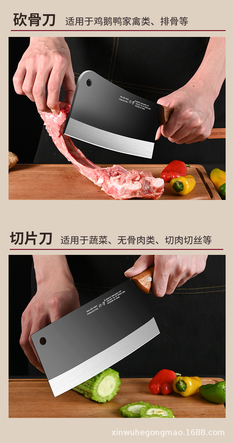 厂家专供不锈钢切菜刀表面防氧化锋利砍骨刀厨用多功能切片刀批发 投诉