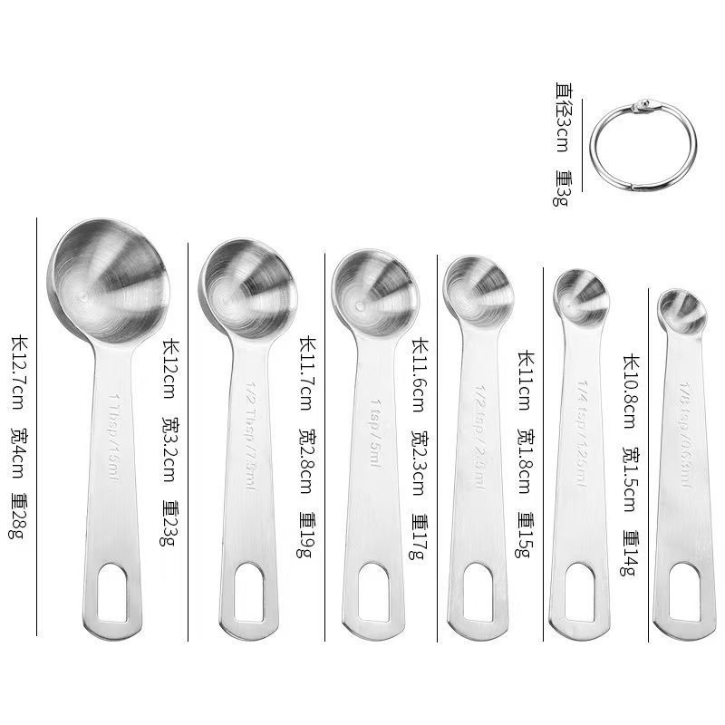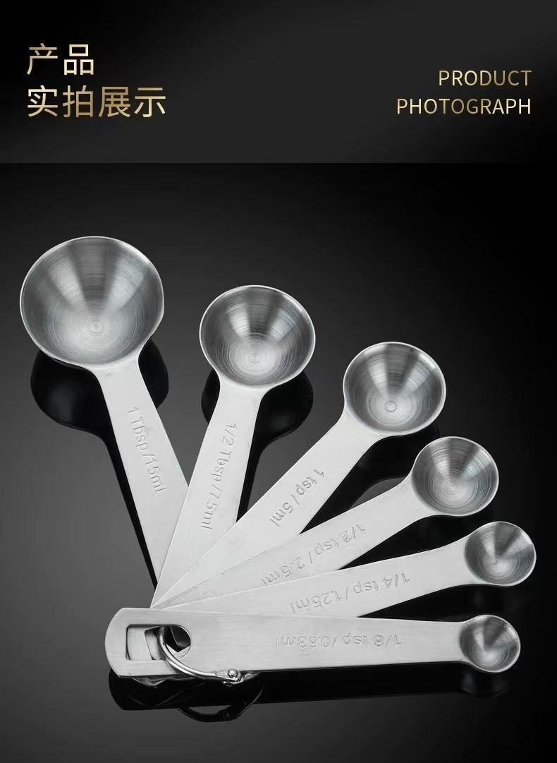 材质: 430不锈钢 品牌: 其他 风格: 现代简约 货号: 量勺1 是否进口: 否 产地: 阳江 类别: 烘焙量勺量杯 规格: 量勺套装【六件套】 主要下游平台: 亚马逊,速卖通,其他 主要销售地区: 欧洲,北美,中东,其他 有可授权的自有品牌: 否 是否跨境出口专供货源: 是 是否有专利: 否