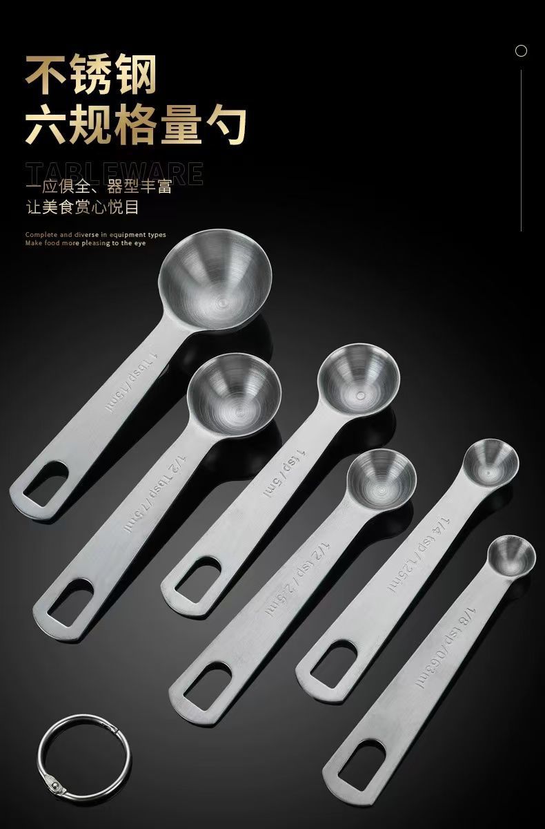 厂家直销不锈钢量勺刻度计量奶粉烘焙量勺跨境亚马逊6件套量勺套