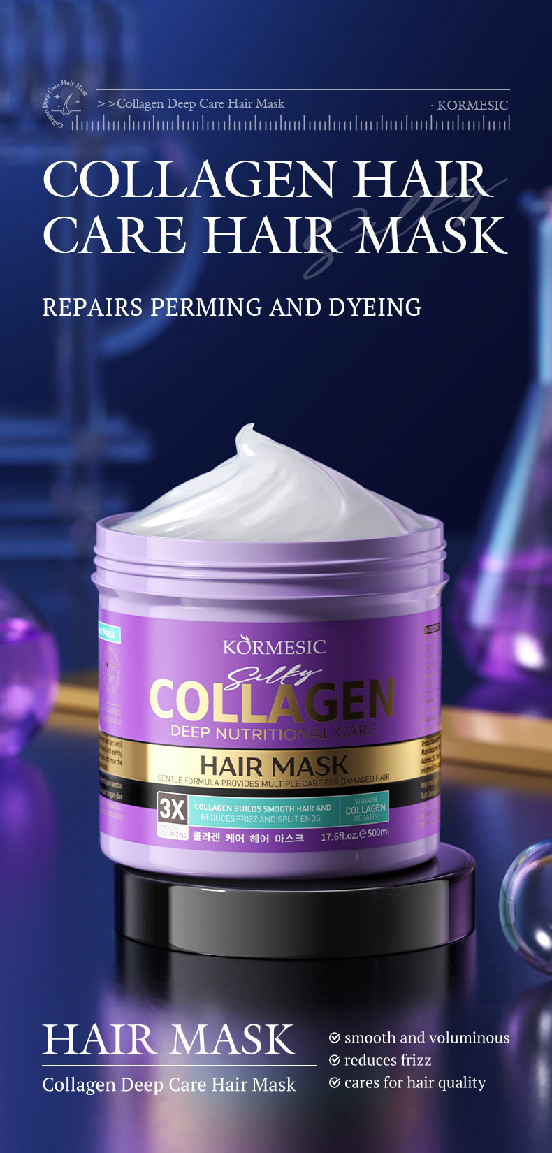 BPOM印尼KORMESIC胶原蛋白深层护理发膜hair mask跨境外贸柔顺呵专供出口 English | 投诉