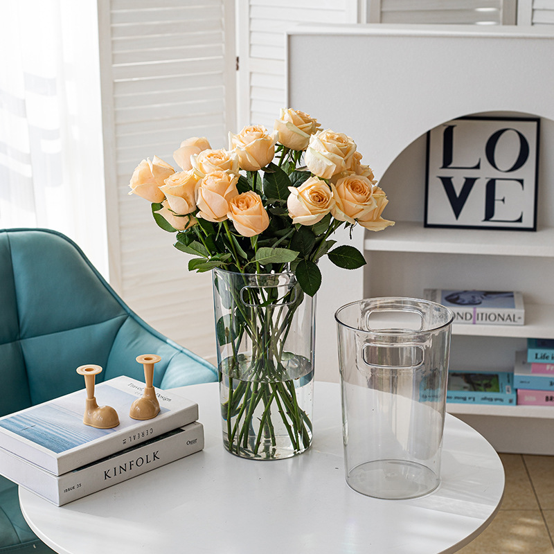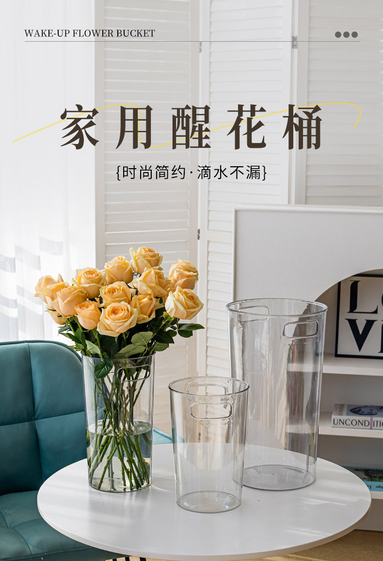 跨境深水醒花桶家用透明亚克力鲜花桶带把手法式花店大号塑料花瓶