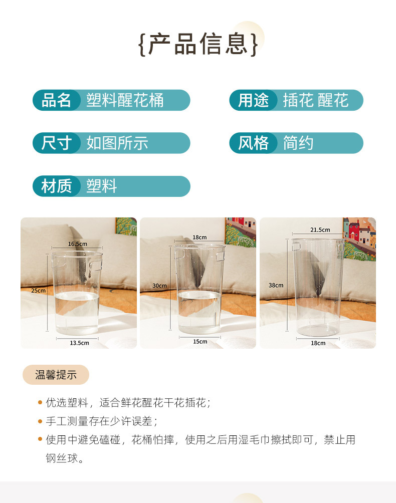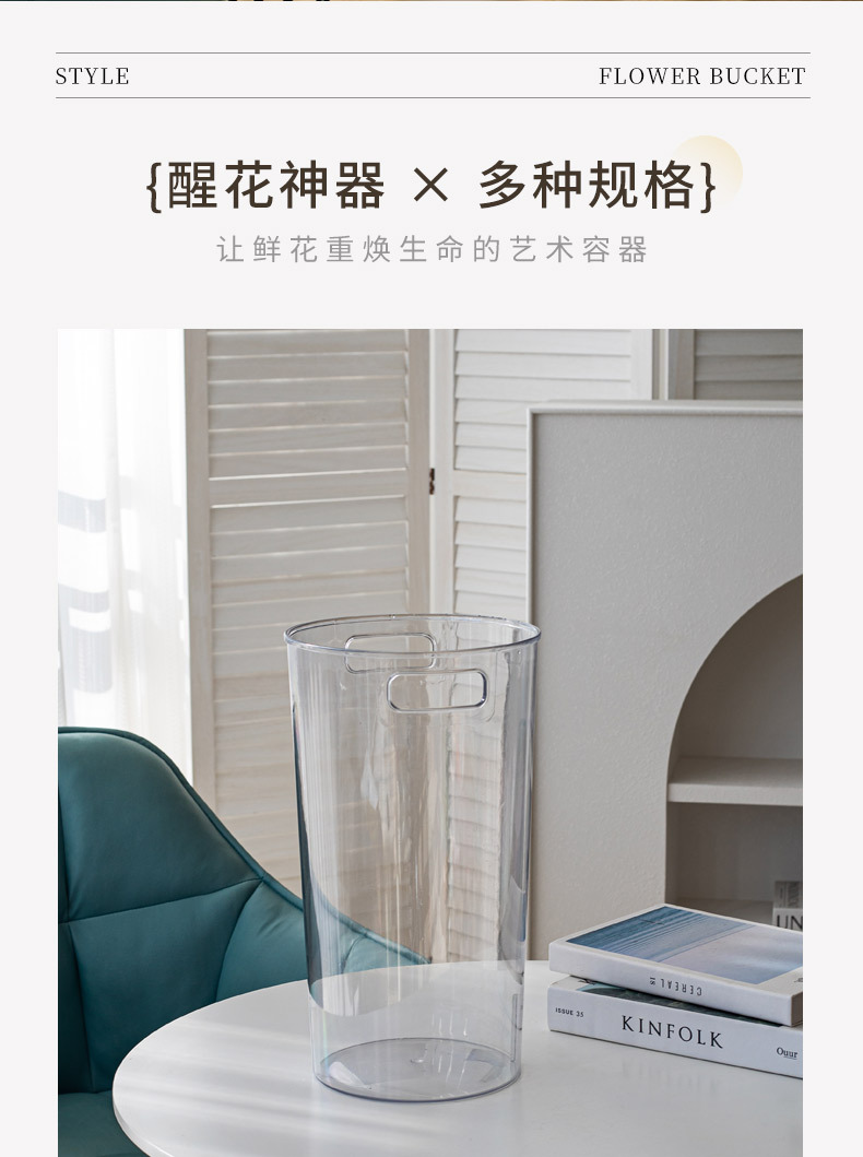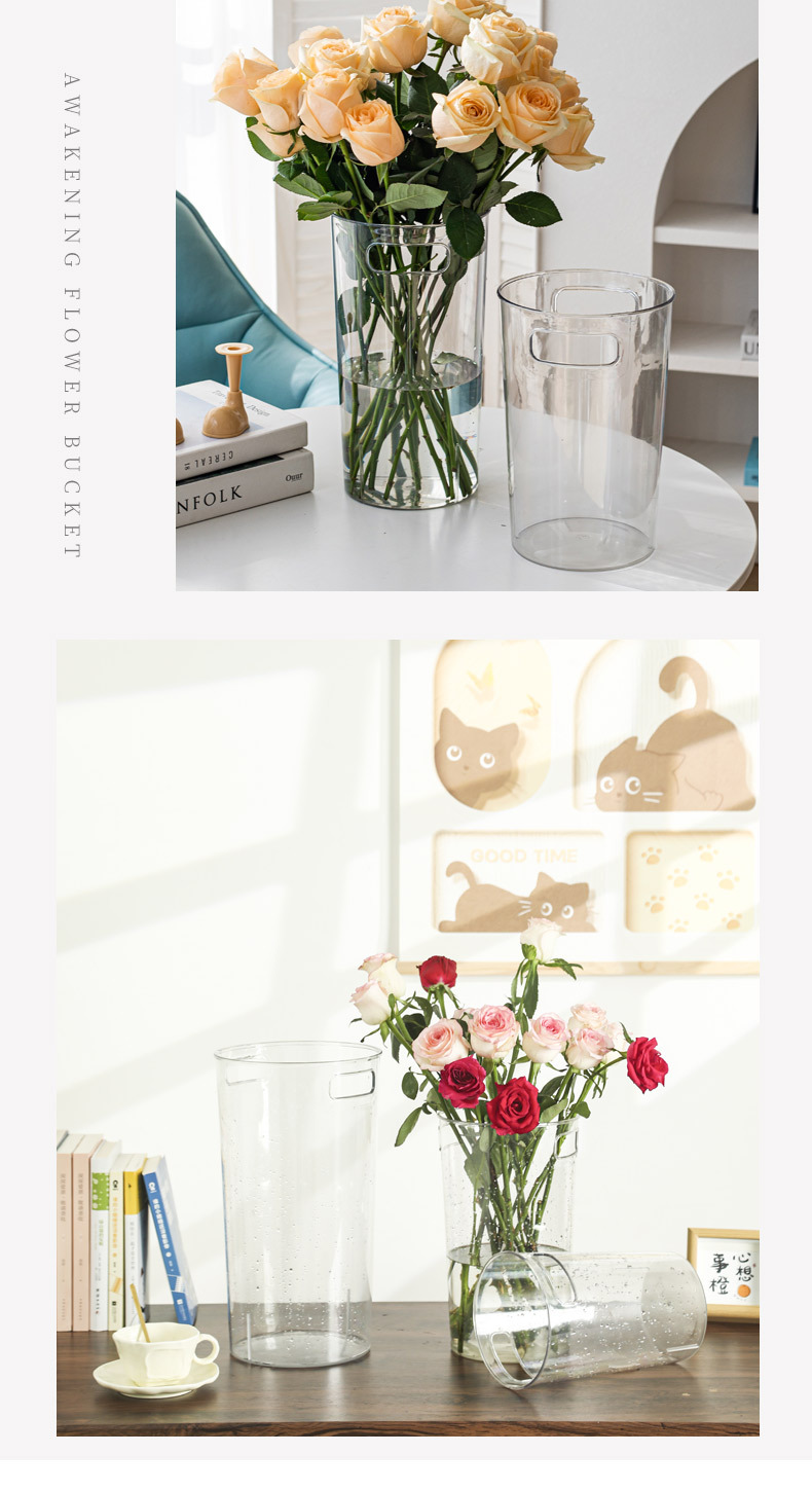 跨境深水醒花桶家用透明亚克力鲜花桶带把手法式花店大号塑料花瓶 投诉