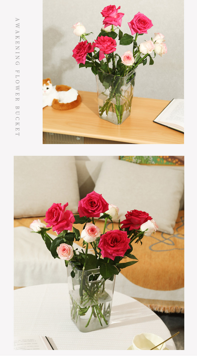 跨境透明亚克力醒花桶养花桶花束花瓶法式插花桶花店家用泡鲜花筒 投诉