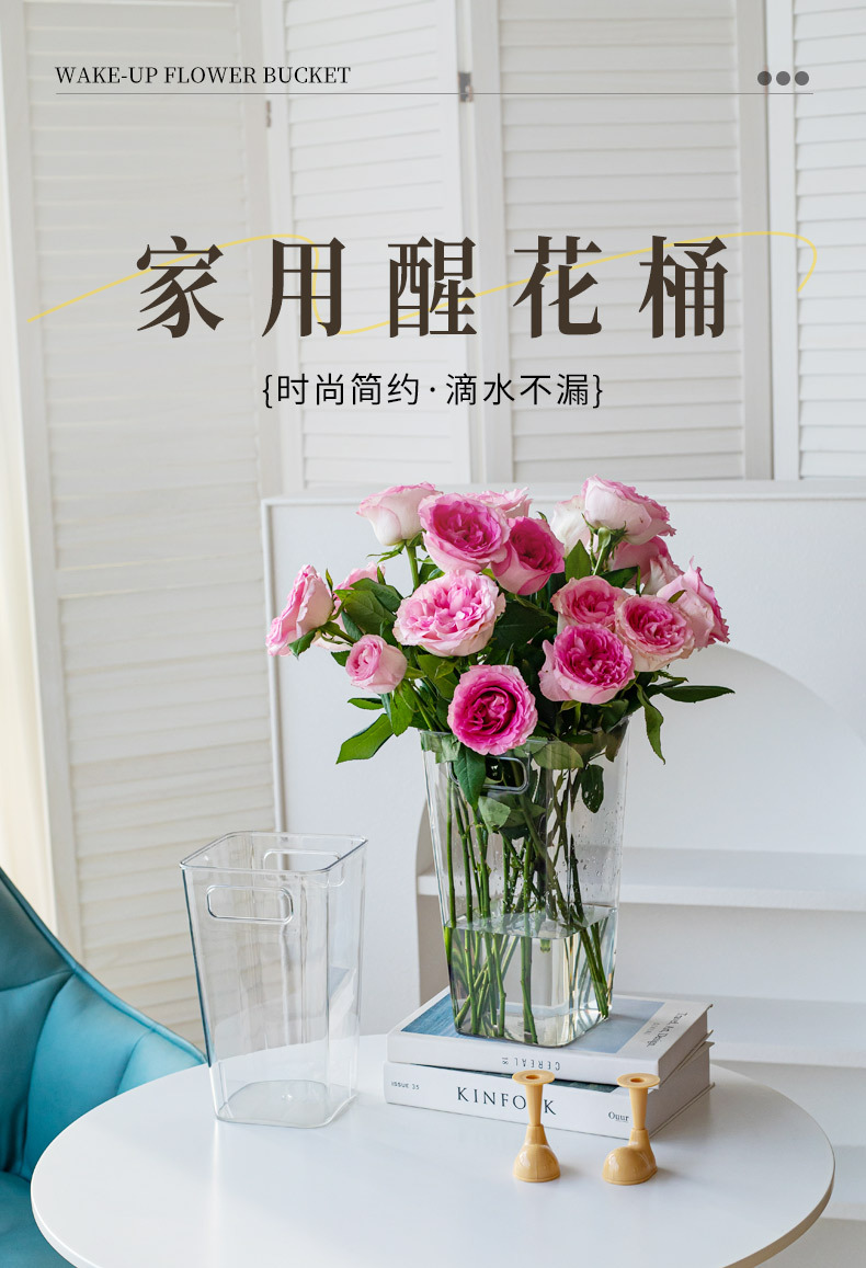 跨境透明亚克力醒花桶养花桶花束花瓶法式插花桶花店家用泡鲜花筒