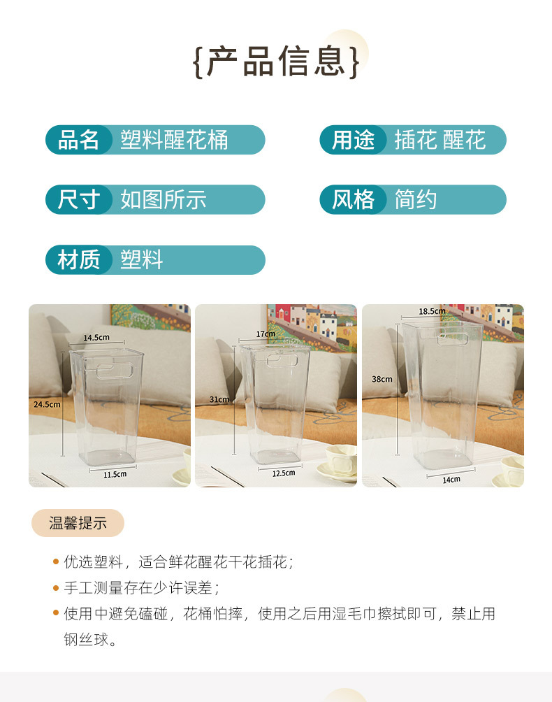 加厚方形亚克力花桶[手提款]-小号 ¥594 994件可售