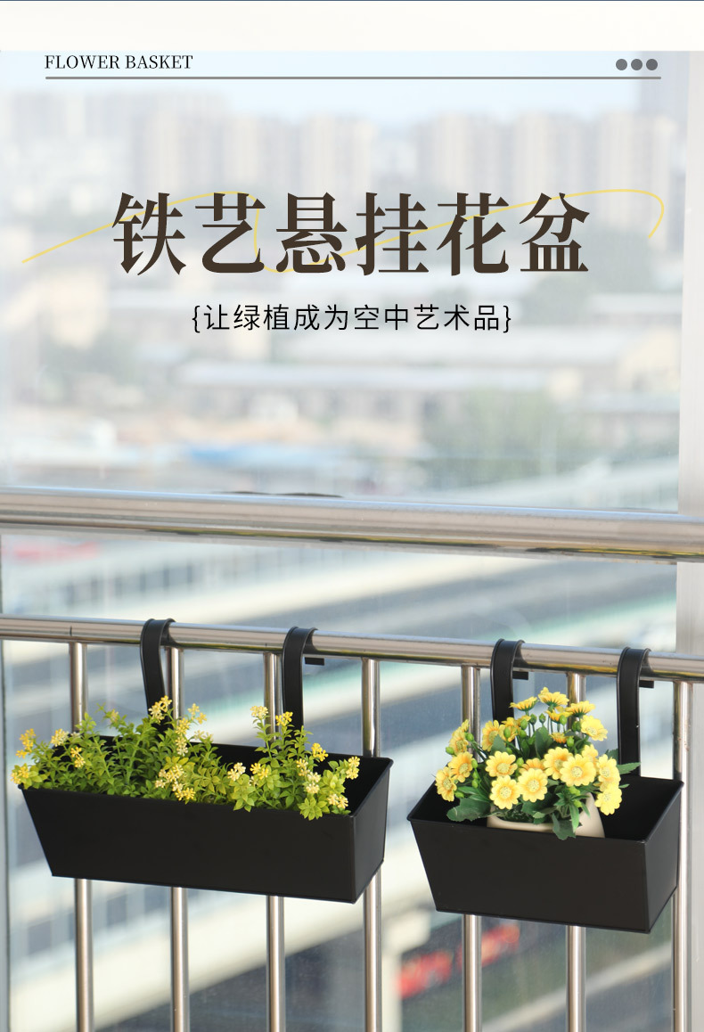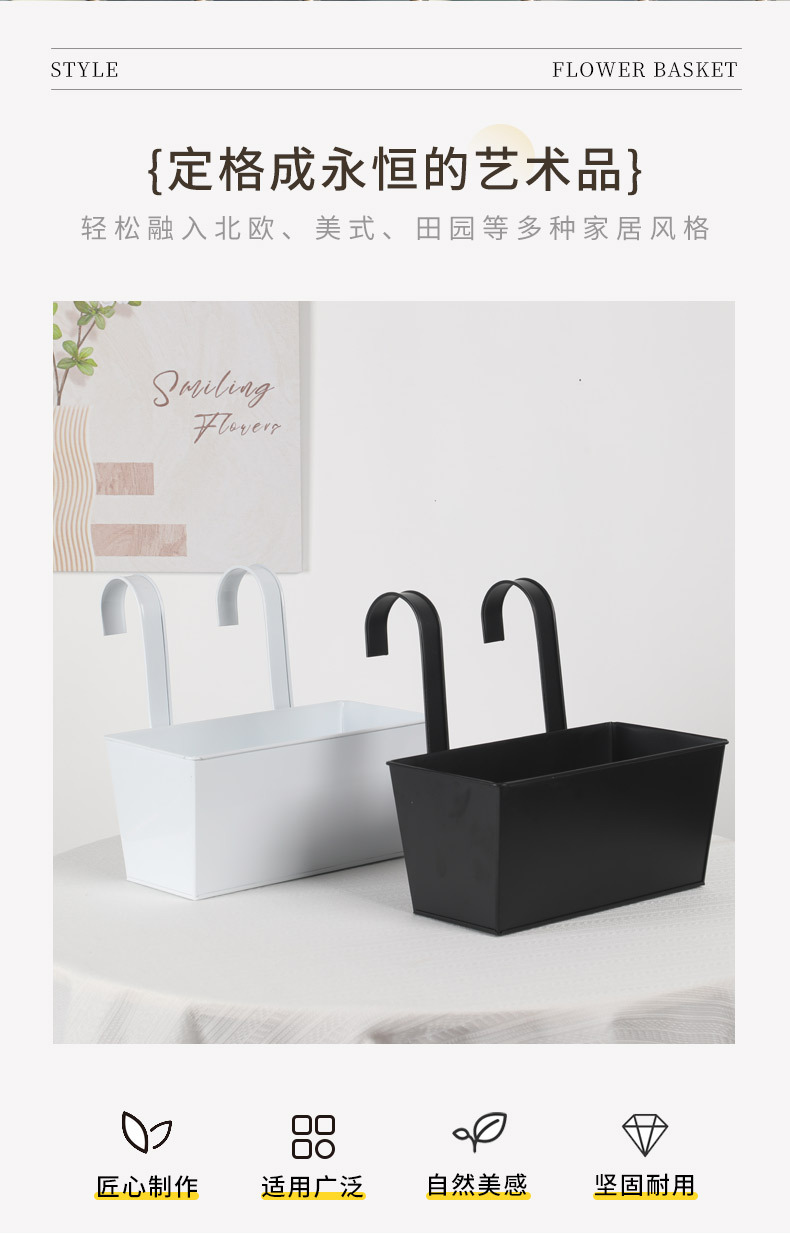 严选长方形铁挂盆阳台挂桶多肉种植盆室内室外花园护栏装饰吊盆篮