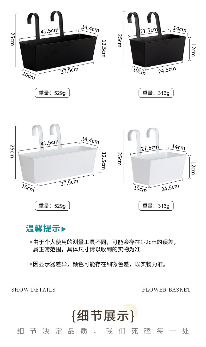 严选长方形铁挂盆阳台挂桶多肉种植盆室内室外花园护栏装饰吊盆篮 投诉