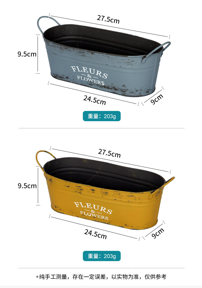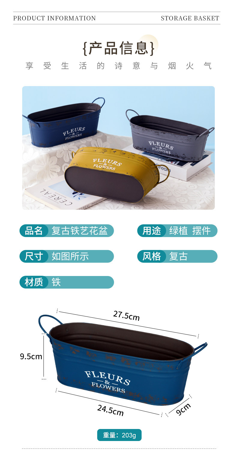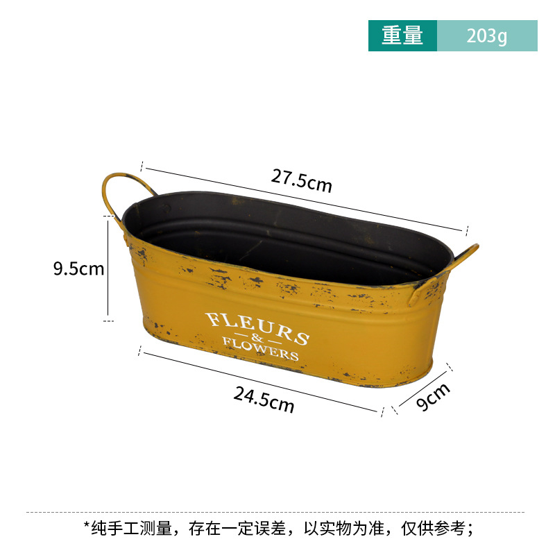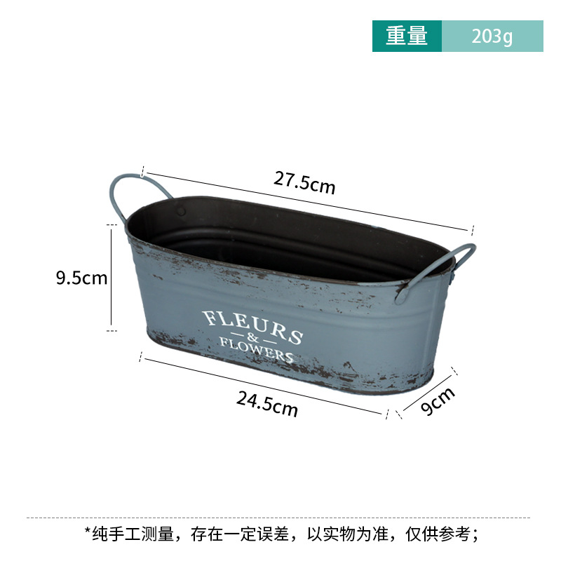 跨境复古做旧花盆椭圆形铁皮桶花桶花店阳台收纳铁艺多肉植物花器 投诉