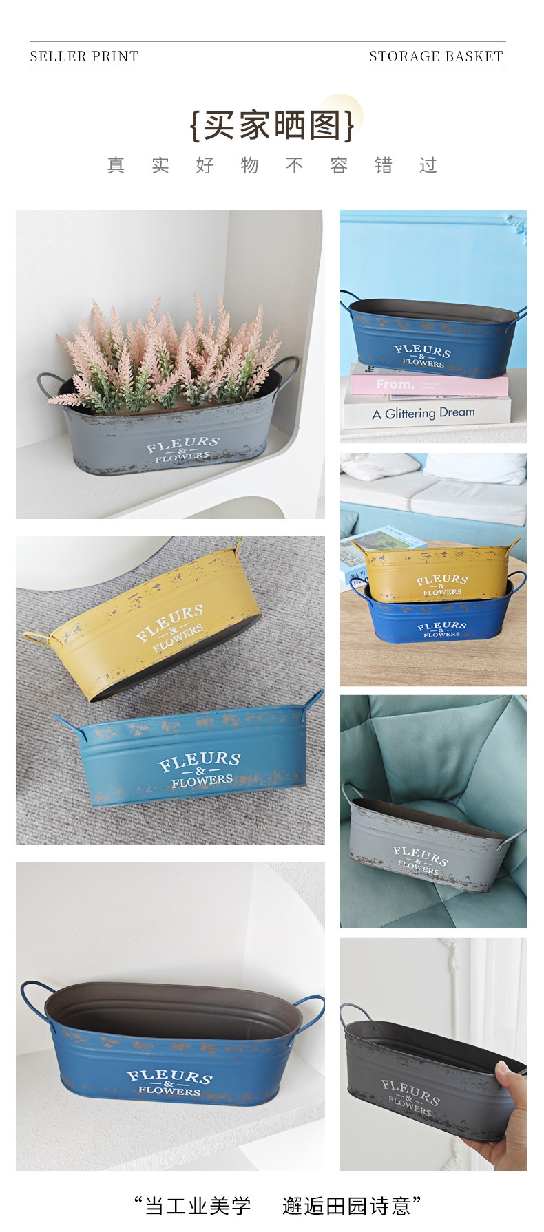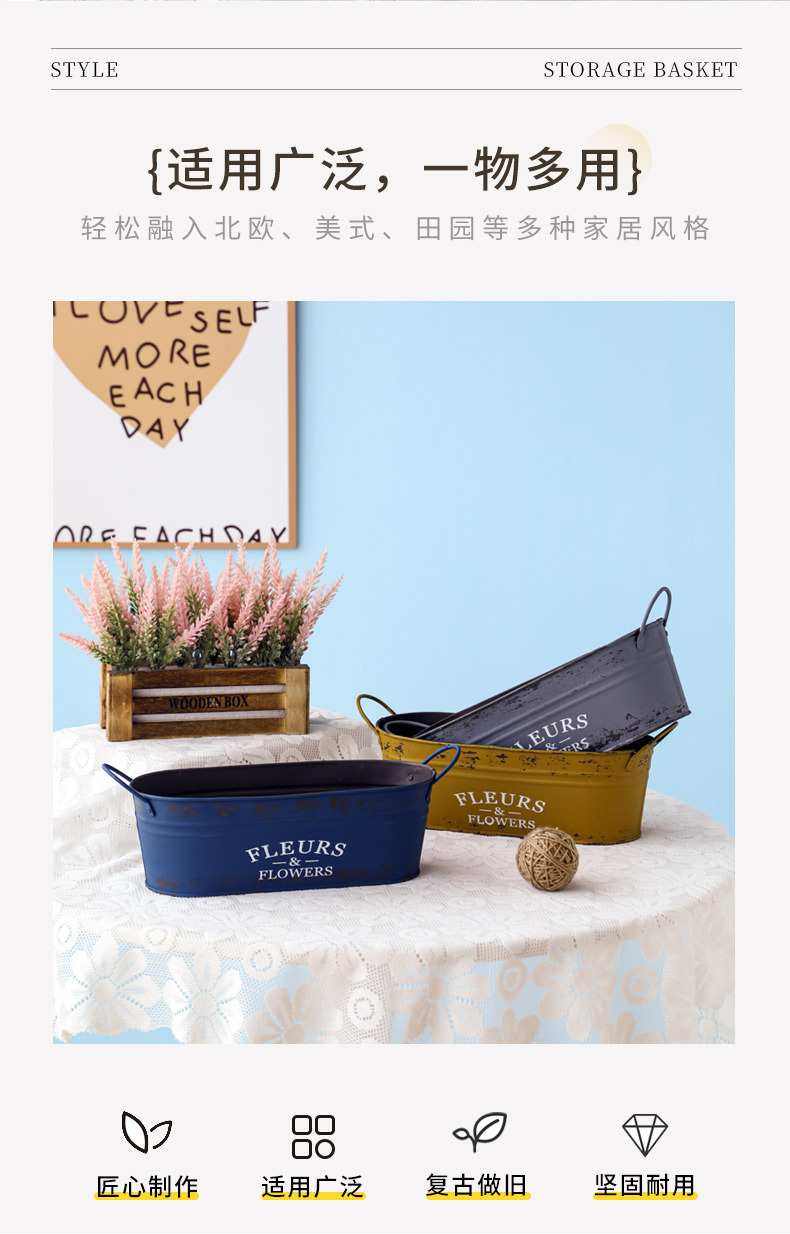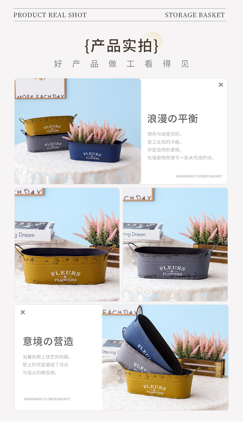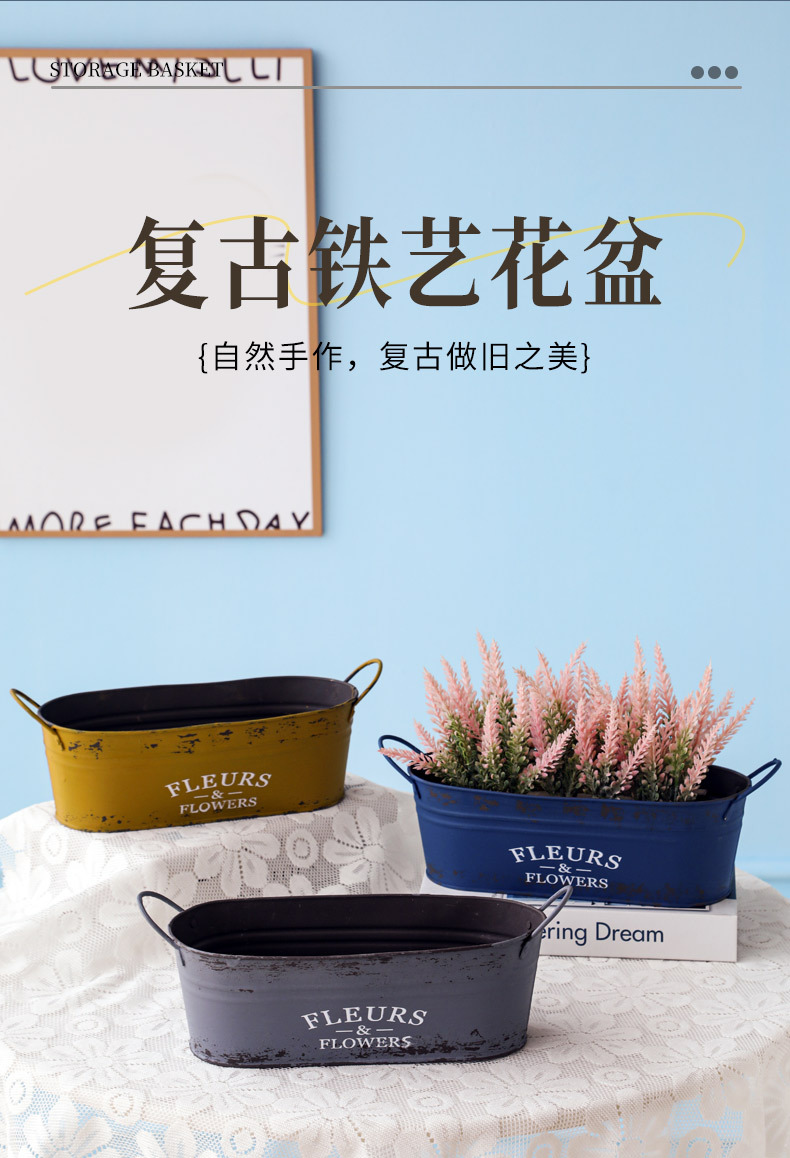跨境复古做旧花盆椭圆形铁皮桶花桶花店阳台收纳铁艺多肉植物花器 投诉