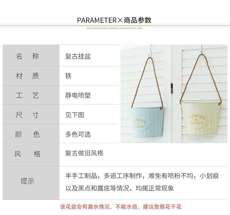 材质: 铁制 特性: 牢固耐用 类型: 花盆 品牌: 愚美人 使用形式: 壁挂式,组合式,吊盆式 应用场景: 家居摆设,商场,家庭园艺,其他 工艺: 铁艺 是否进口: 否 风格: 复古 货号: 复古壁挂花盆