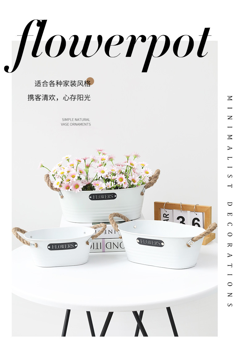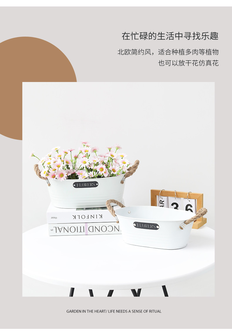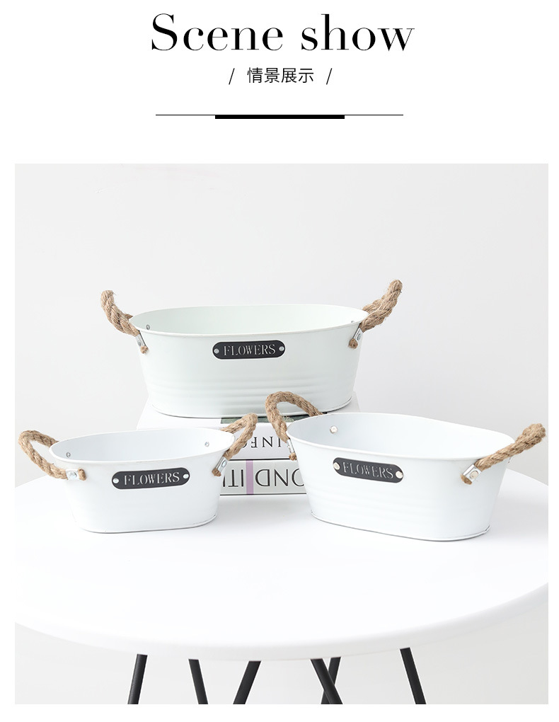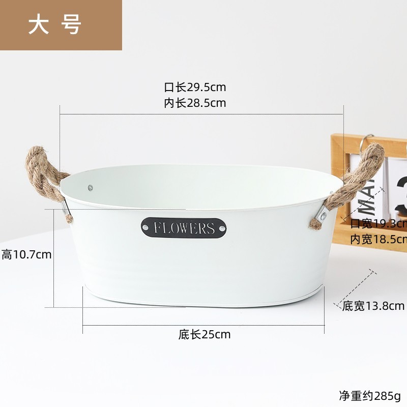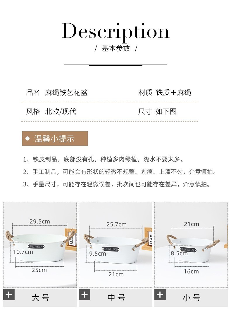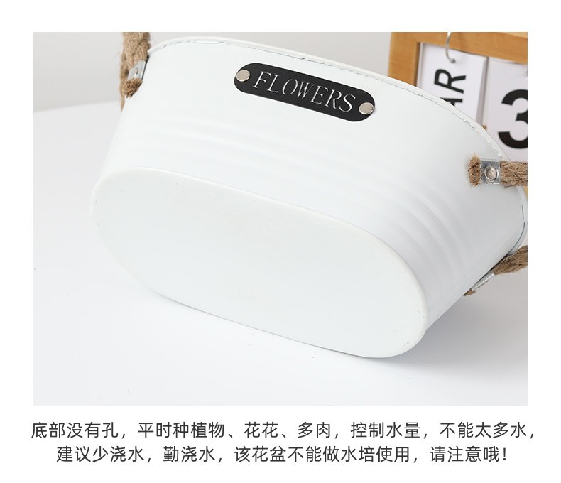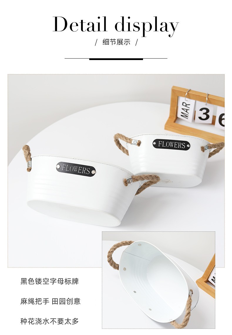 材质: 铁 特性: 牢固耐用,节水抗旱 类型: 花盆 品牌: 愚美人 使用形式: 组合式,桌面式,落地式,堆叠式 应用场景: 办公室,酒店,家居摆设,商场,家庭园艺, 工艺: 机械 是否进口: 否 风格: 复古 货号: 黑标镂空字母白色麻绳椭圆盆