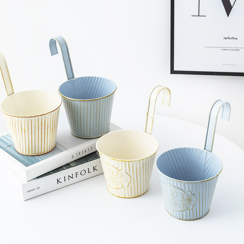 铁艺复古做旧装饰铁皮花盆小铁桶阳台种植多肉植物吊盆悬挂式挂盆