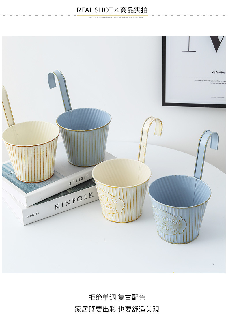 铁艺复古做旧装饰铁皮花盆小铁桶阳台种植多肉植物吊盆悬挂式挂盆 投诉