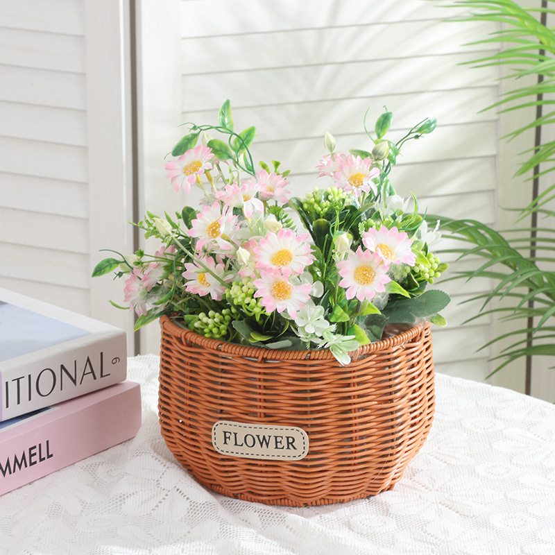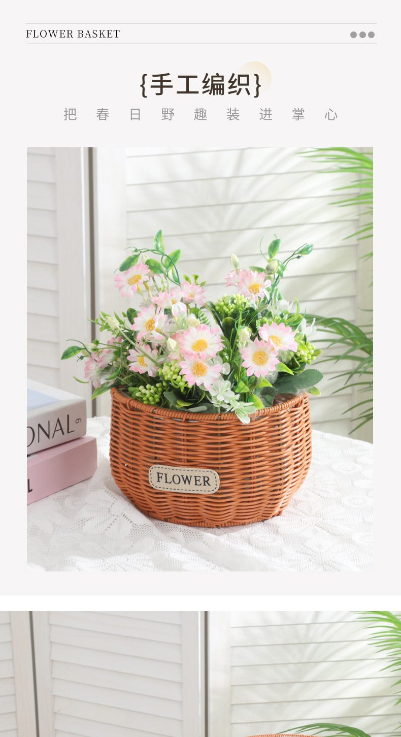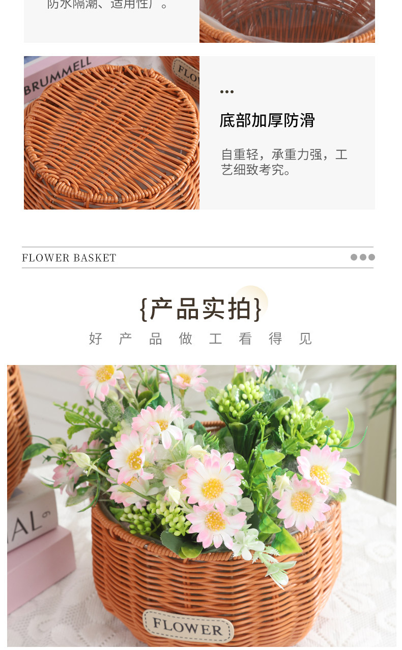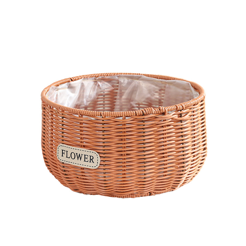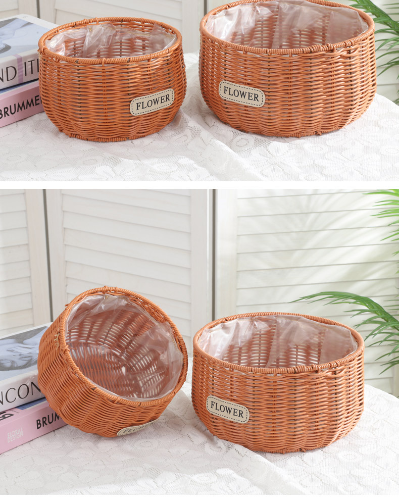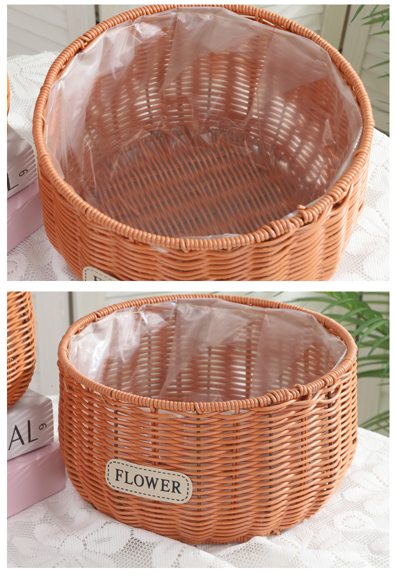 跨境塑料仿藤编织花盆蝴蝶兰花卉园艺基地圆形编织花篮家居收纳篮 投诉