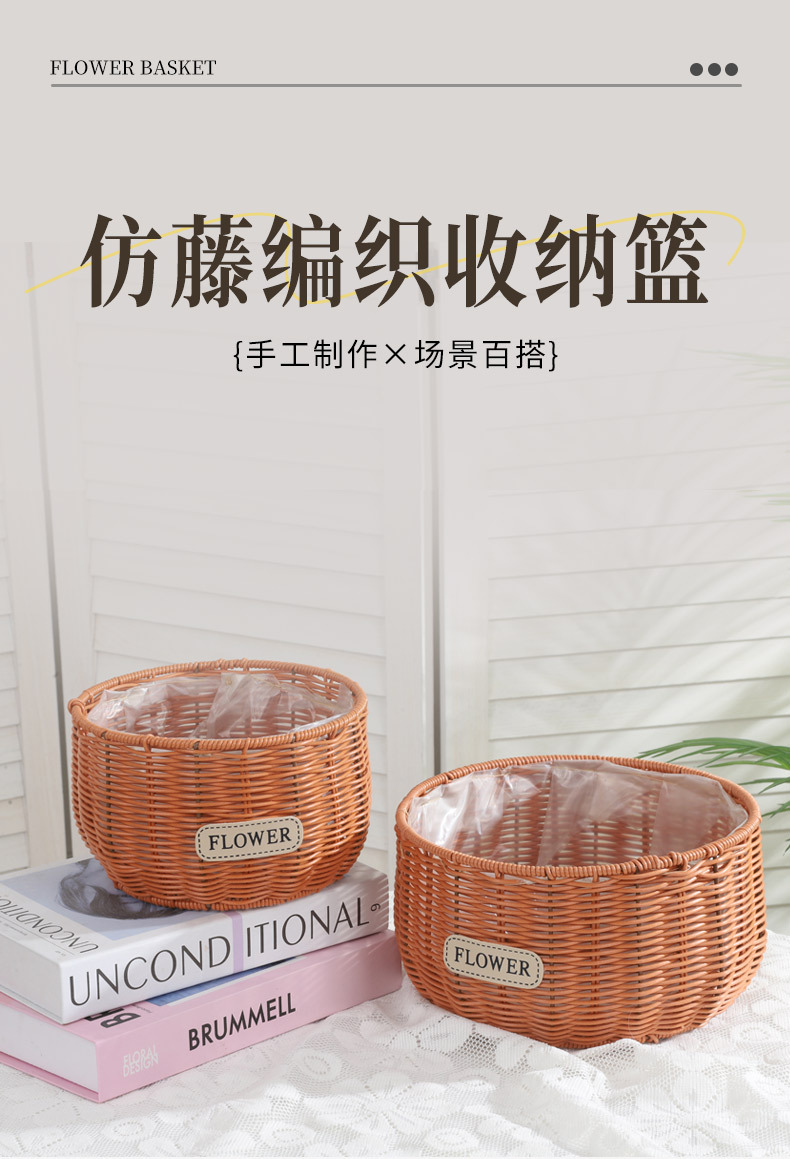 跨境塑料仿藤编织花盆蝴蝶兰花卉园艺基地圆形编织花篮家居收纳篮