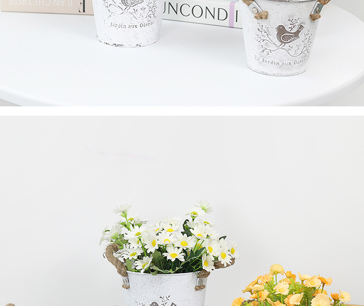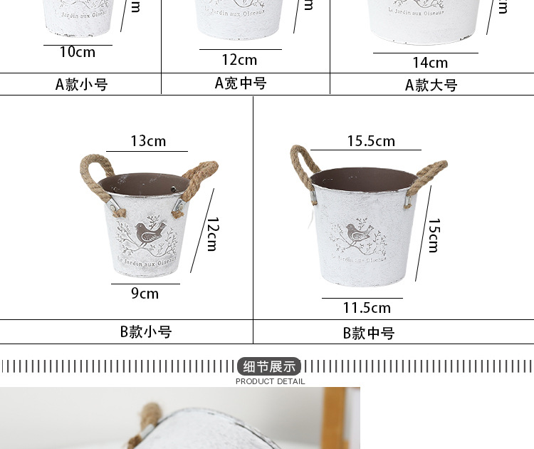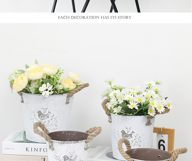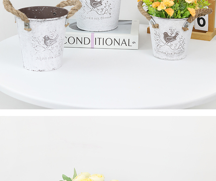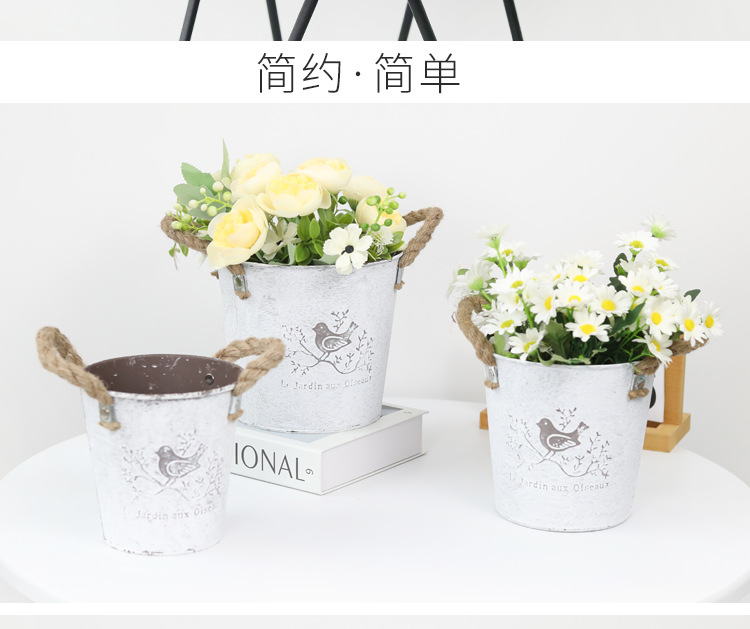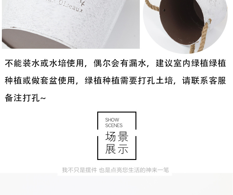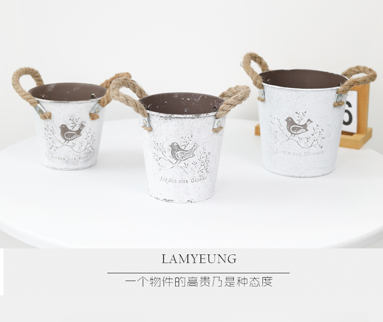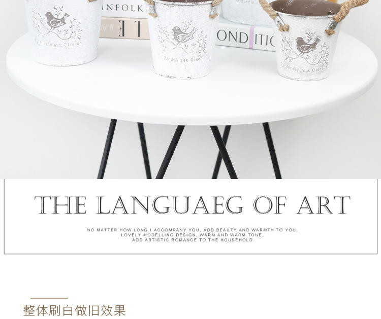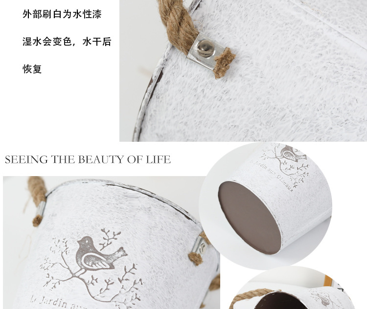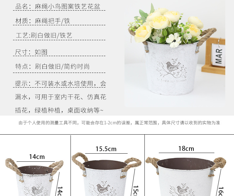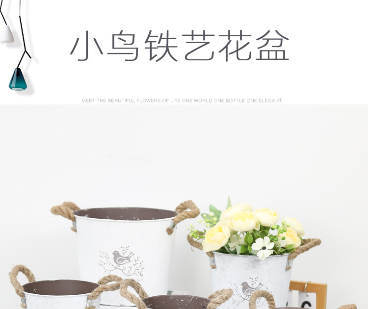 复古做旧刷白铁皮花盆多肉绿植小鸟图案铁艺花盆室内桌面装饰花盆 投诉