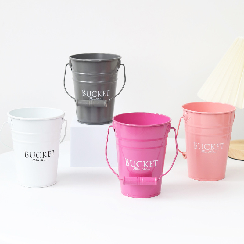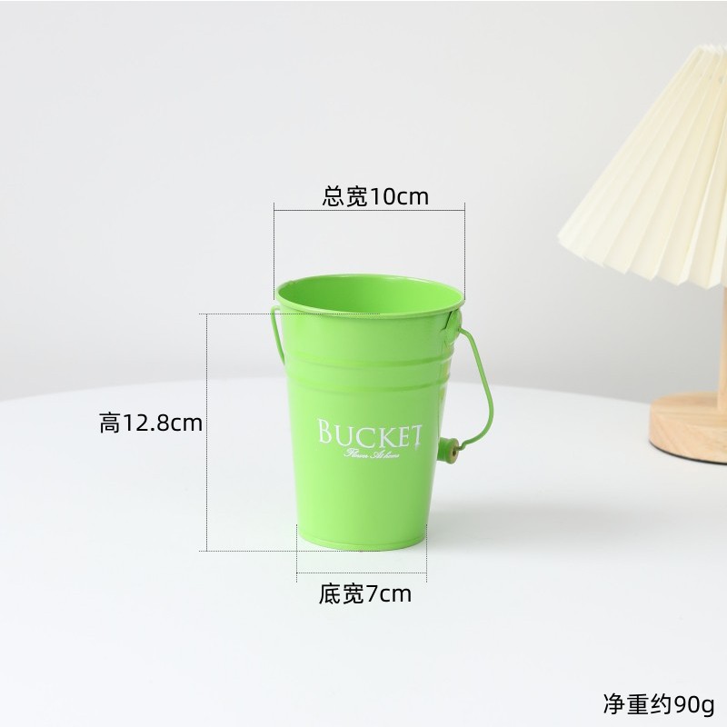 糖果色铁皮小提桶桌面吧台画笔收纳桶客厅装饰英文字母桶铁皮套盆