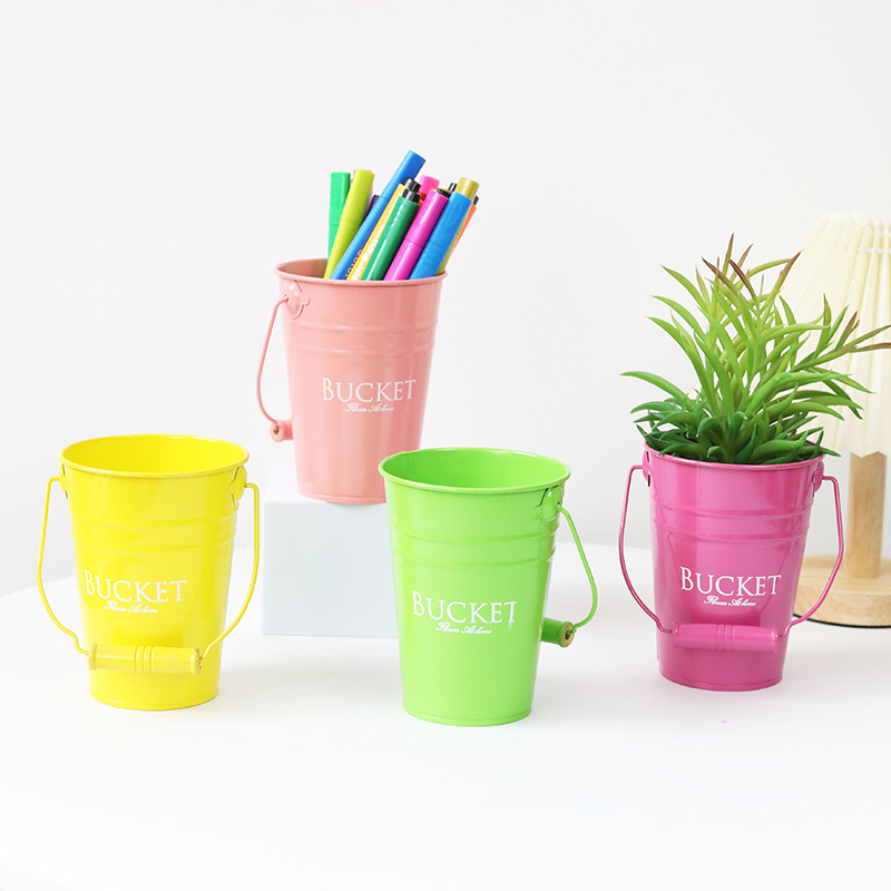 糖果色铁皮小提桶桌面吧台画笔收纳桶客厅装饰英文字母桶铁皮套盆 投诉