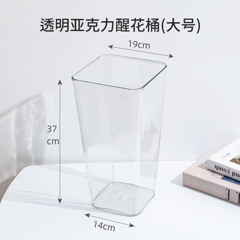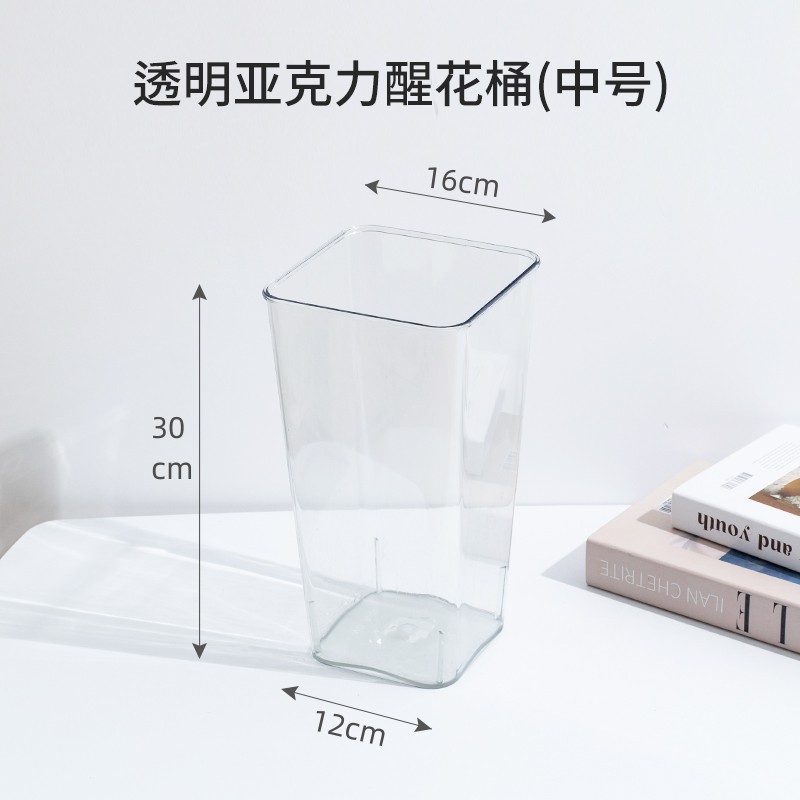 透明亚克力方形花桶家用醒花桶客厅装饰鲜花桶花店鲜花醒花专用桶