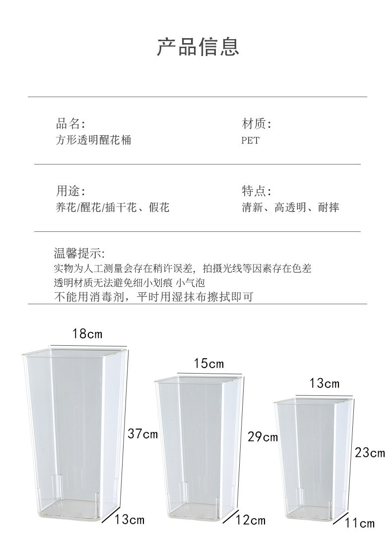 透明亚克力方形花桶家用醒花桶客厅装饰鲜花桶花店鲜花醒花专用桶 投诉