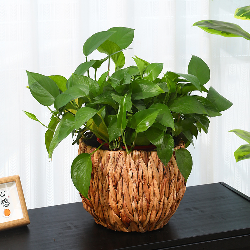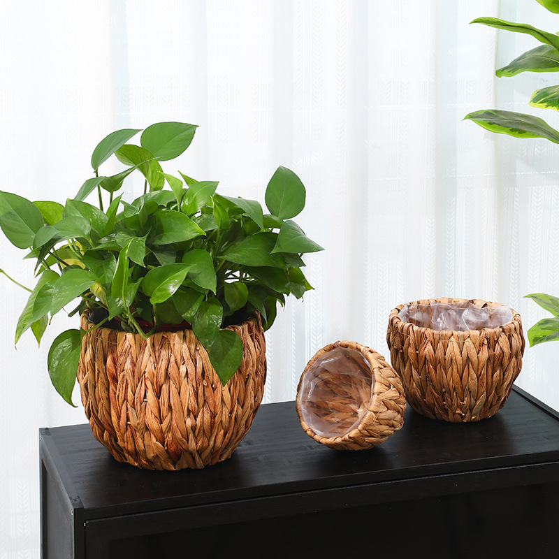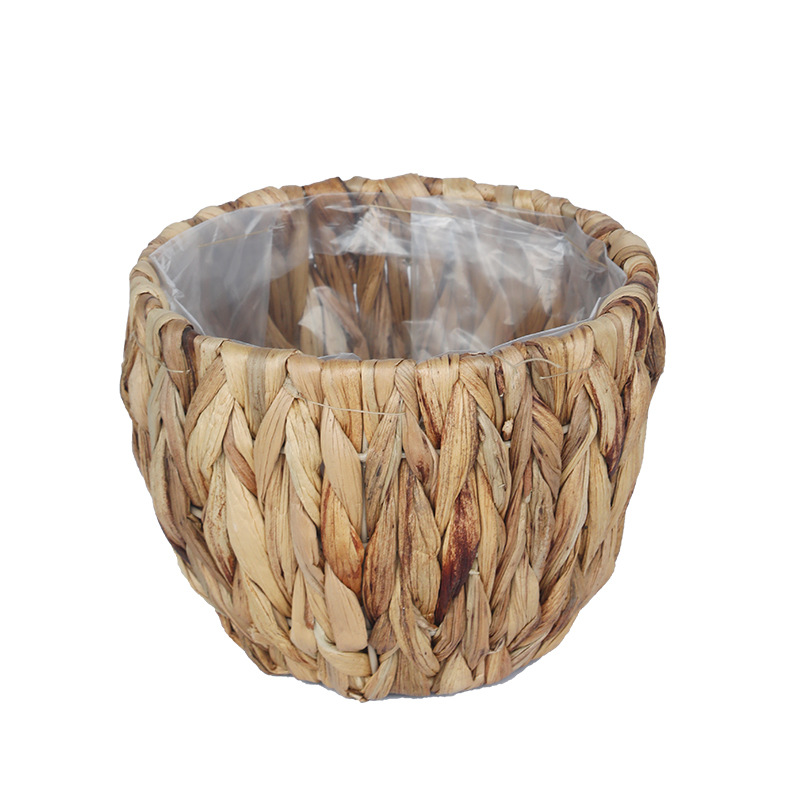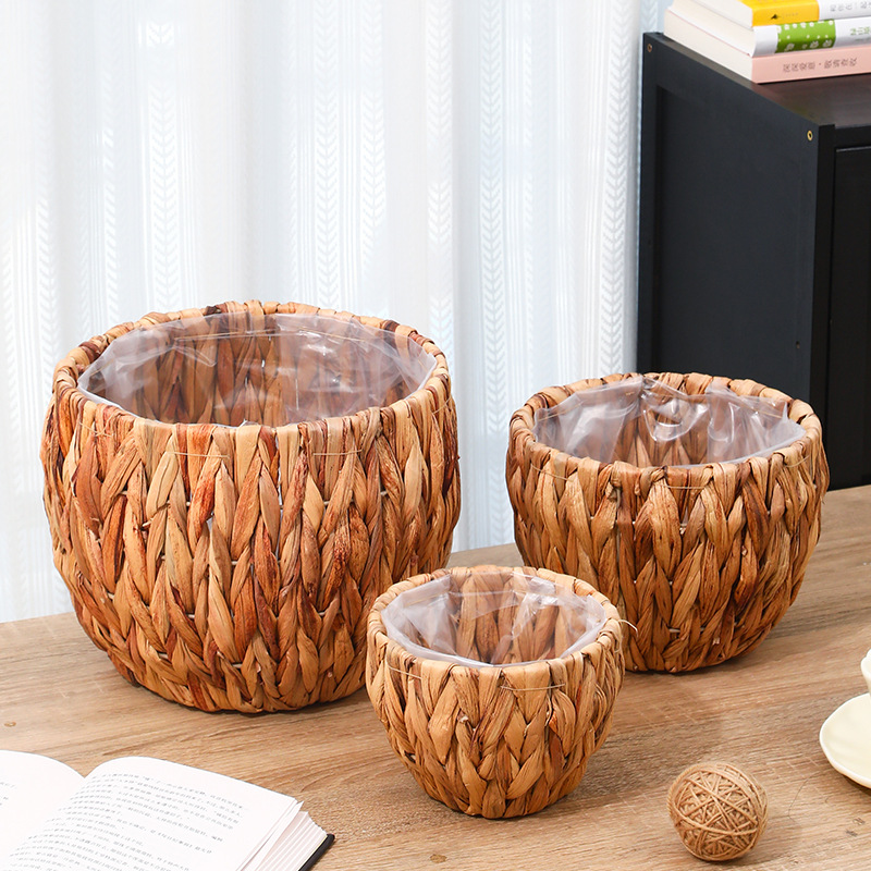 跨境草编植物装饰收纳篮阳台绿植摆件花盆编织花篮子带防水收纳筐